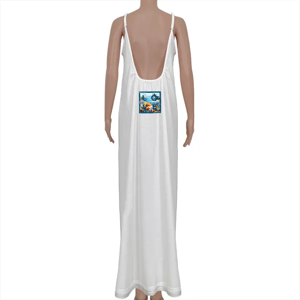 Its unique design flatters your silhouette with a plunging back that will capture everyone’s attention. Perfect for an elegant evening, pair it with high-heeled sandals for a cocktail party, or opt for a more relaxed look with refined flat shoes on warm summer days by the sea.