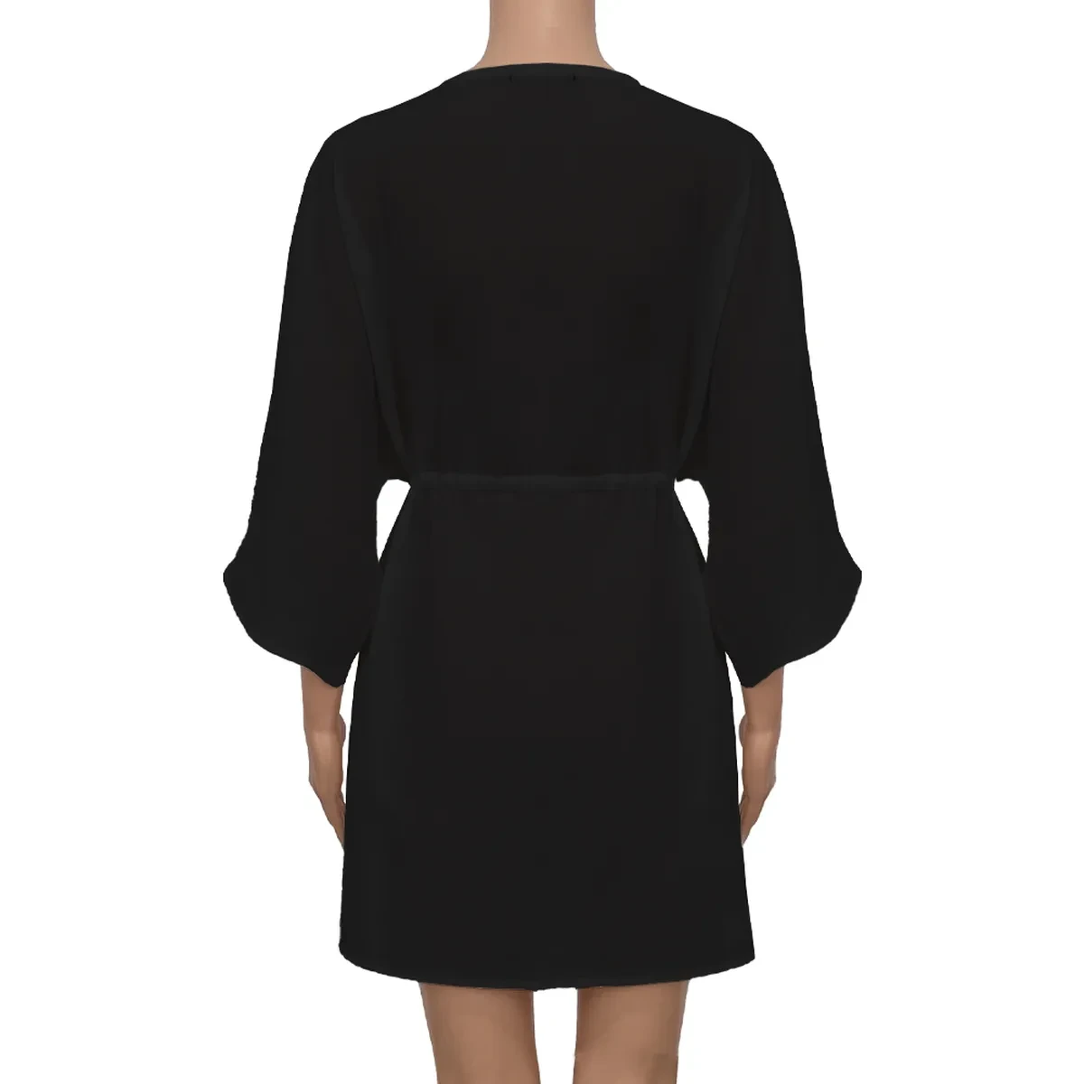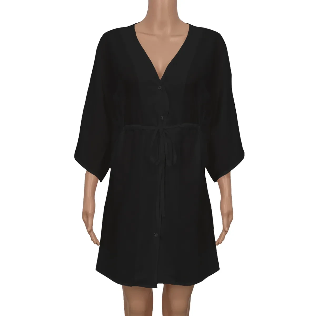 The Alexia Dress combines comfort and elegance in a light, flowing silhouette. Its V-neckline and wide sleeves add a touch of freshness and movement, while the loose fit drapes naturally and gracefully.