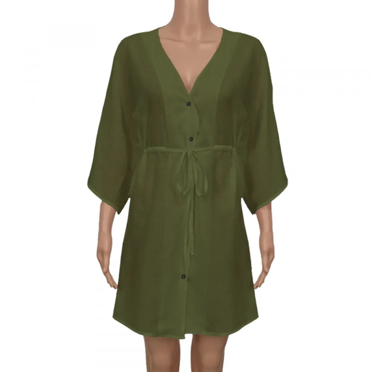 The Alexia Dress combines comfort and elegance in a light, flowing silhouette. Its V-neckline and wide sleeves add a touch of freshness and movement, while the loose fit drapes naturally and gracefully.