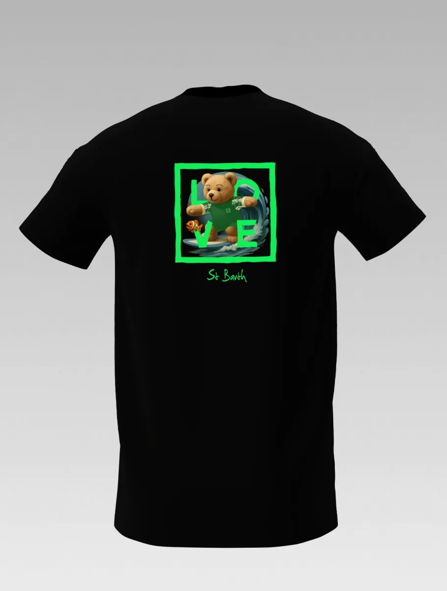 Black Kids’ T-shirt – Surfing Bear – Signature St Barth & St Martin – LOVE Edition