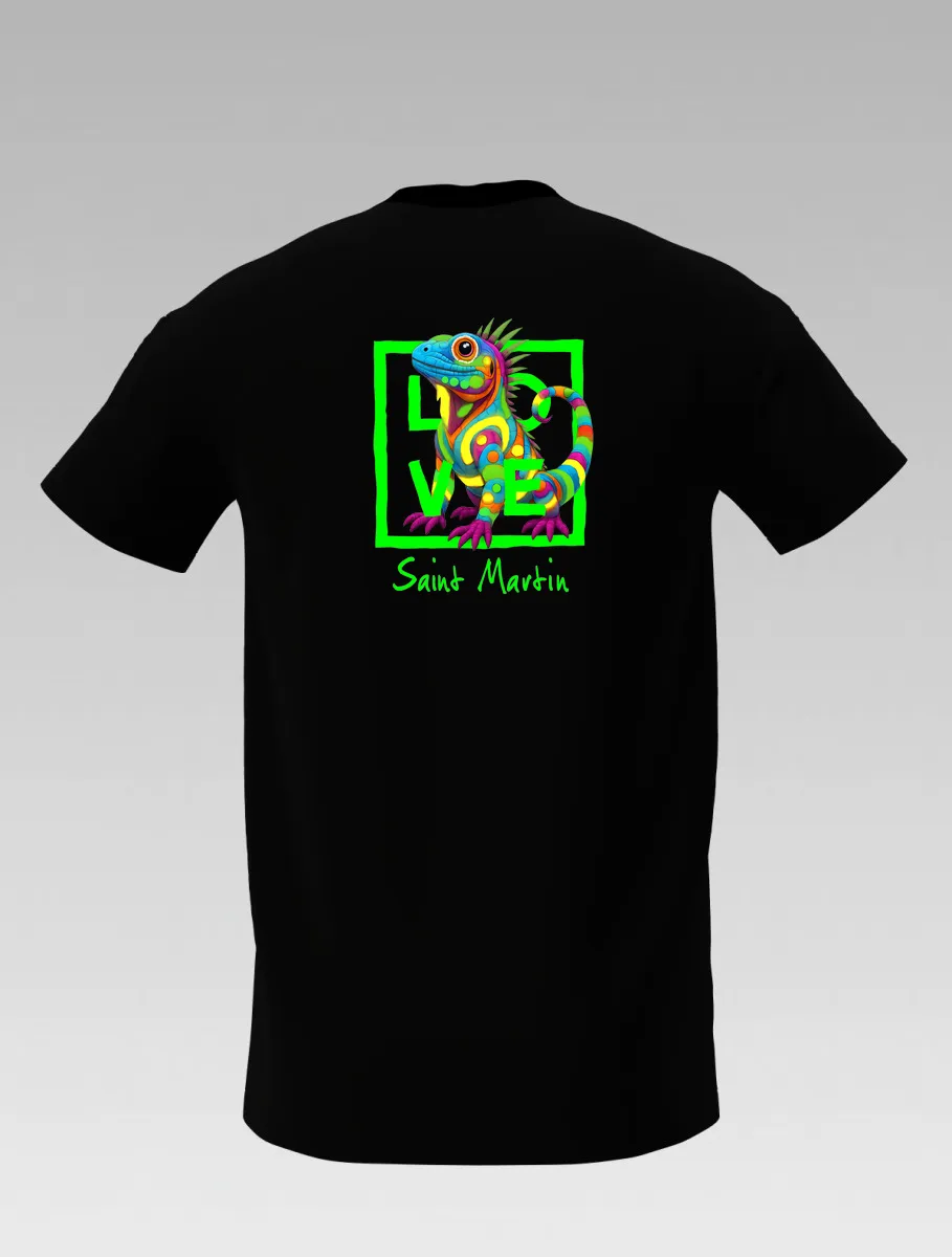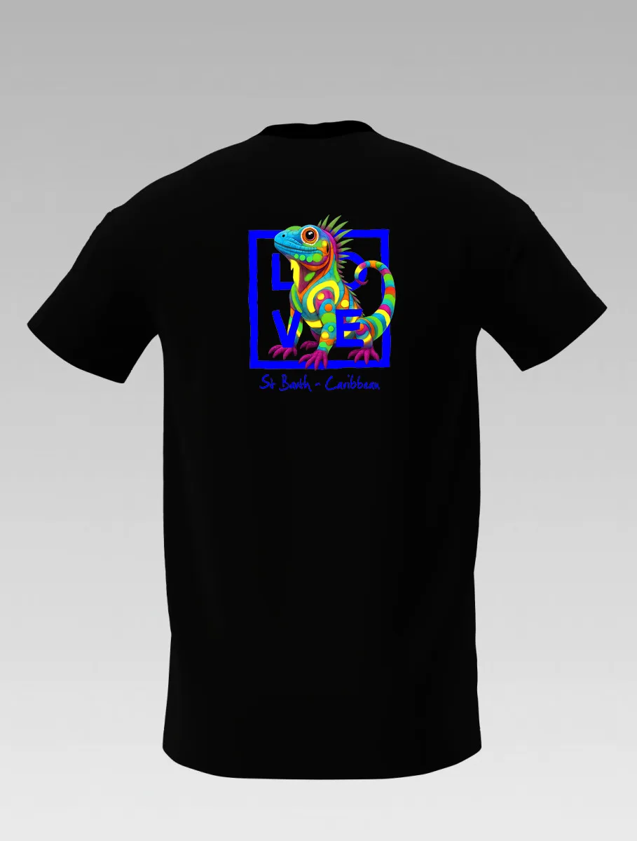 Black kids’ T-shirt – Tropical Iguana – Signature St Barth & St Martin – LOVE Edition