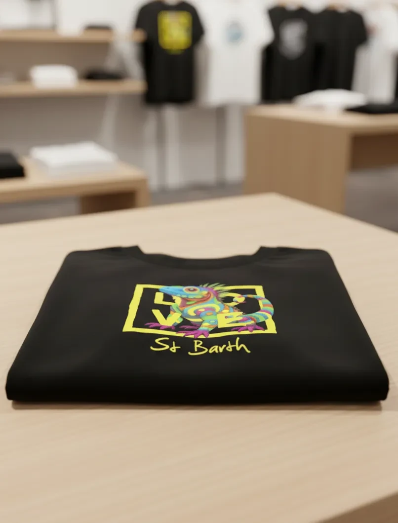 This black T-shirt from St Barth & St Martin, part of the LOVE line, features a cheerful and exotic design.