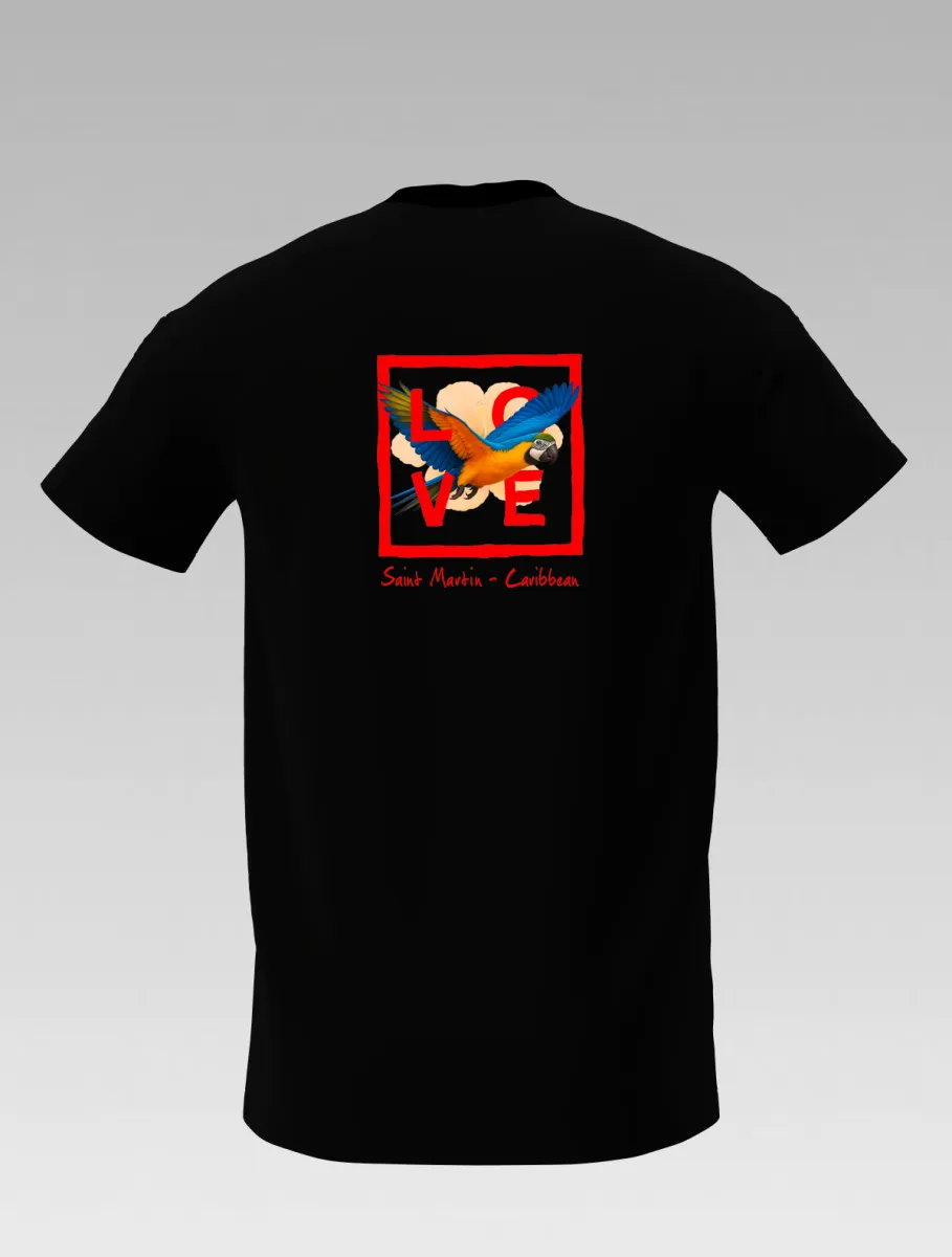 This black T-shirt from St Barth & St Martin, part of the LOVE line, stands out with its modern contrast and tropical flair.