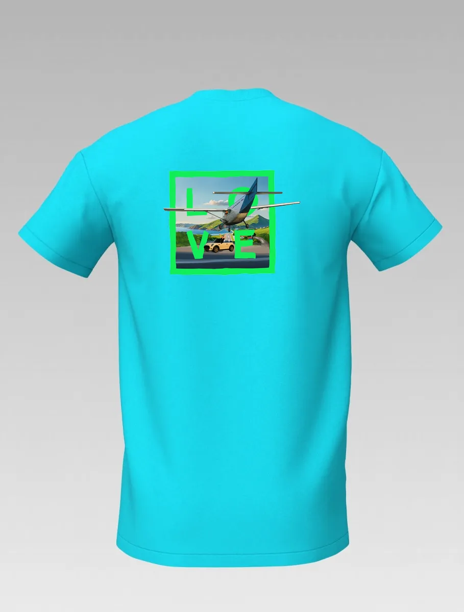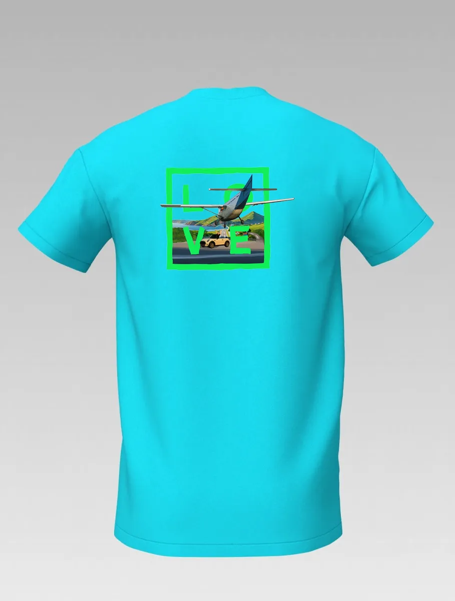 This turquoise T-shirt from St Barth, part of the LOVE Edition, celebrates the world-famous St Barth Airport, known for its breathtaking landings between sea and hills.