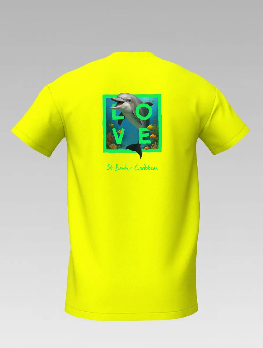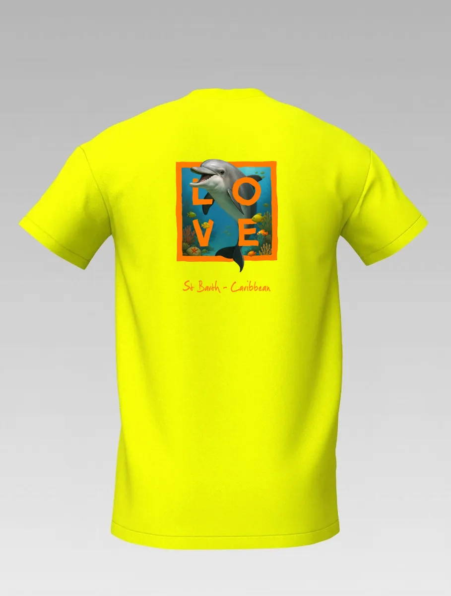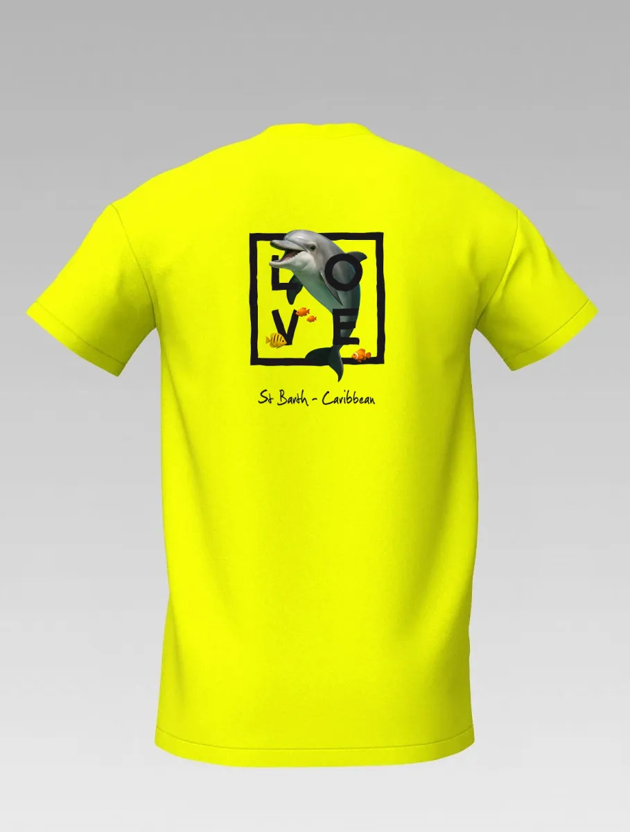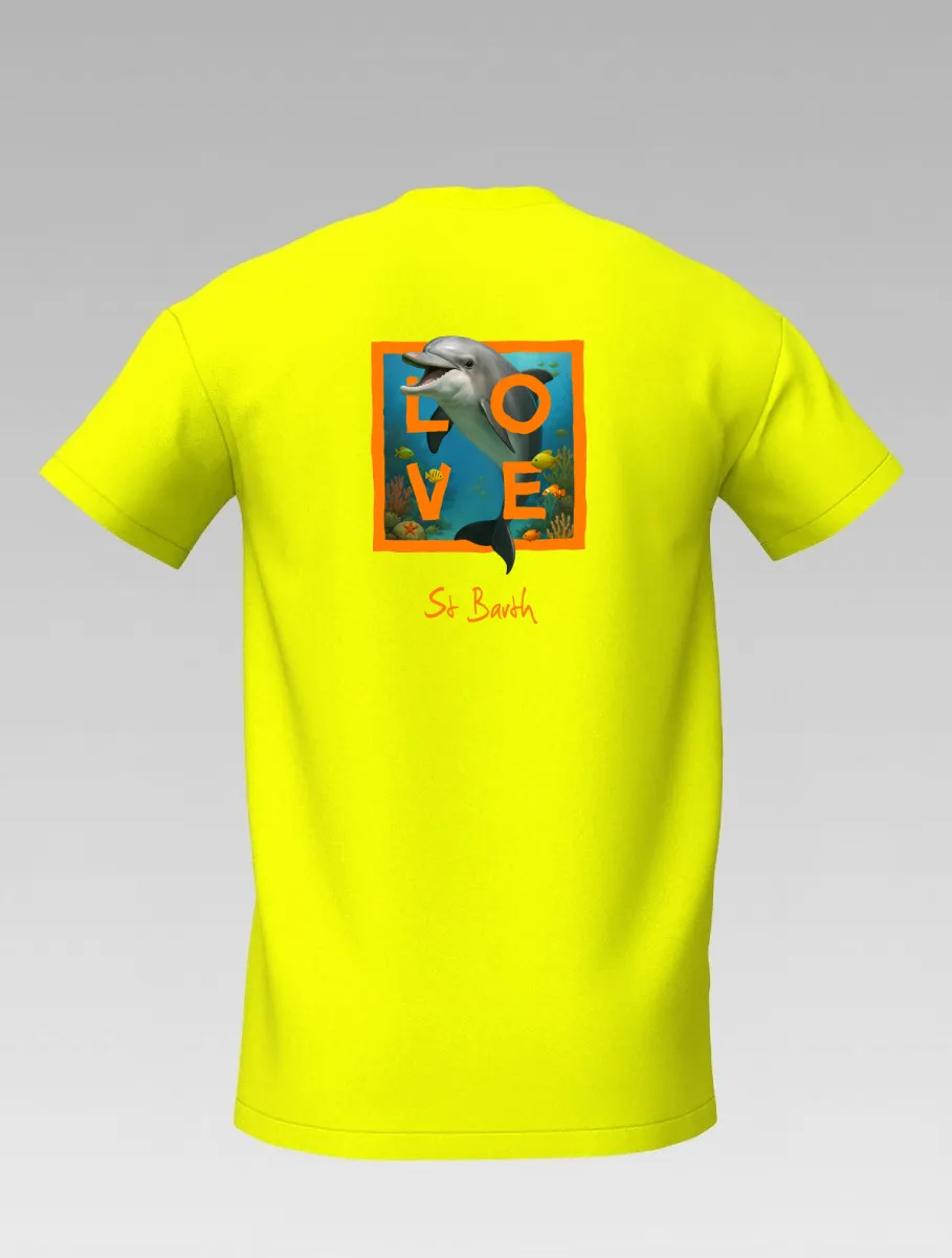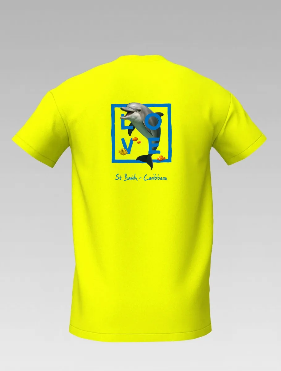 This yellow T-shirt from St Barth & St Martin, part of the LOVE Edition, celebrates the tenderness and energy of the ocean through the dolphin — a symbol of joy, freedom, and friendship.