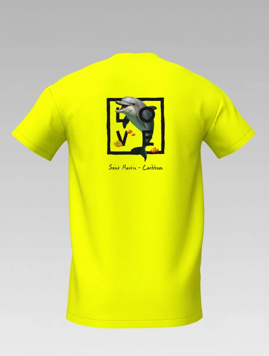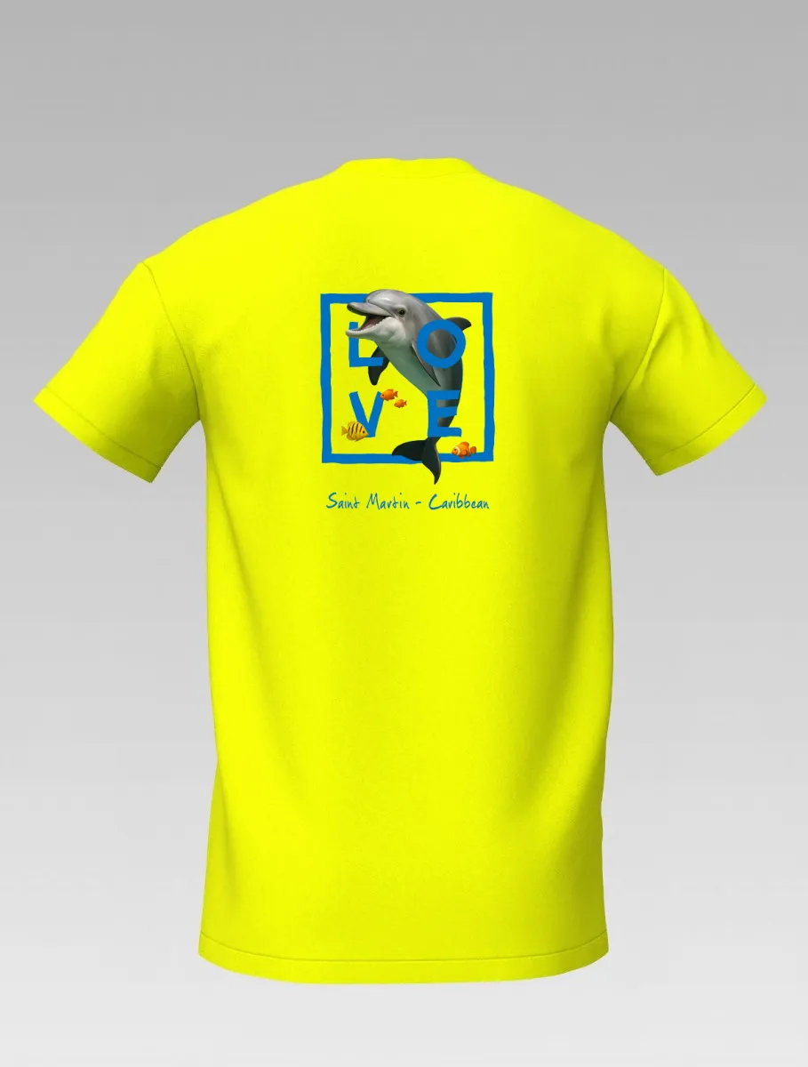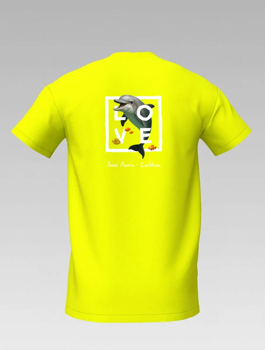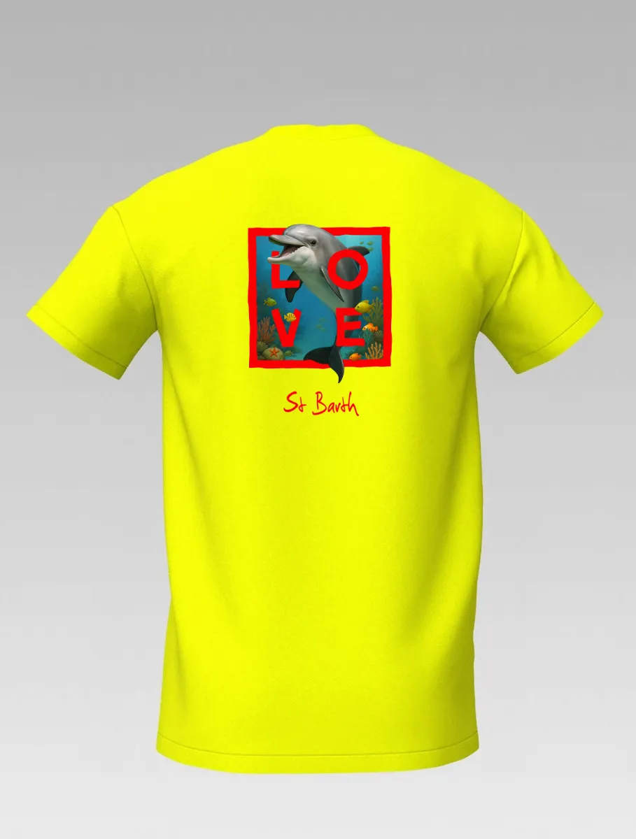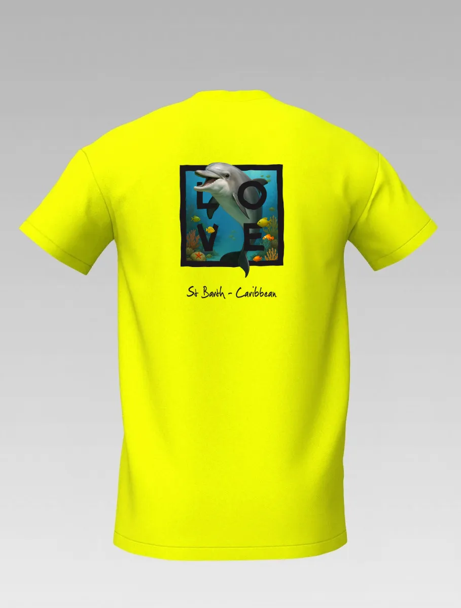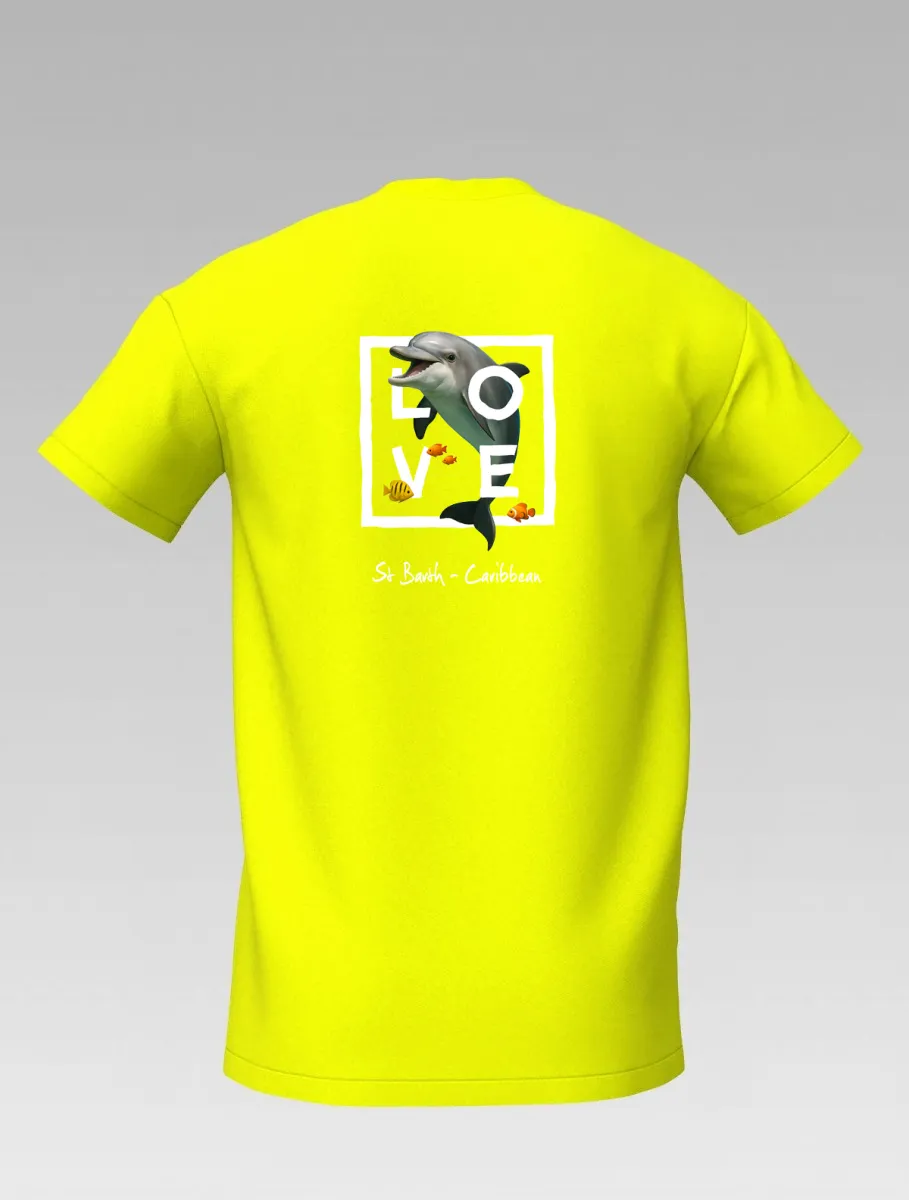 This yellow T-shirt from St Barth & St Martin, part of the LOVE Edition, celebrates the tenderness and energy of the ocean through the dolphin — a symbol of joy, freedom, and friendship.
