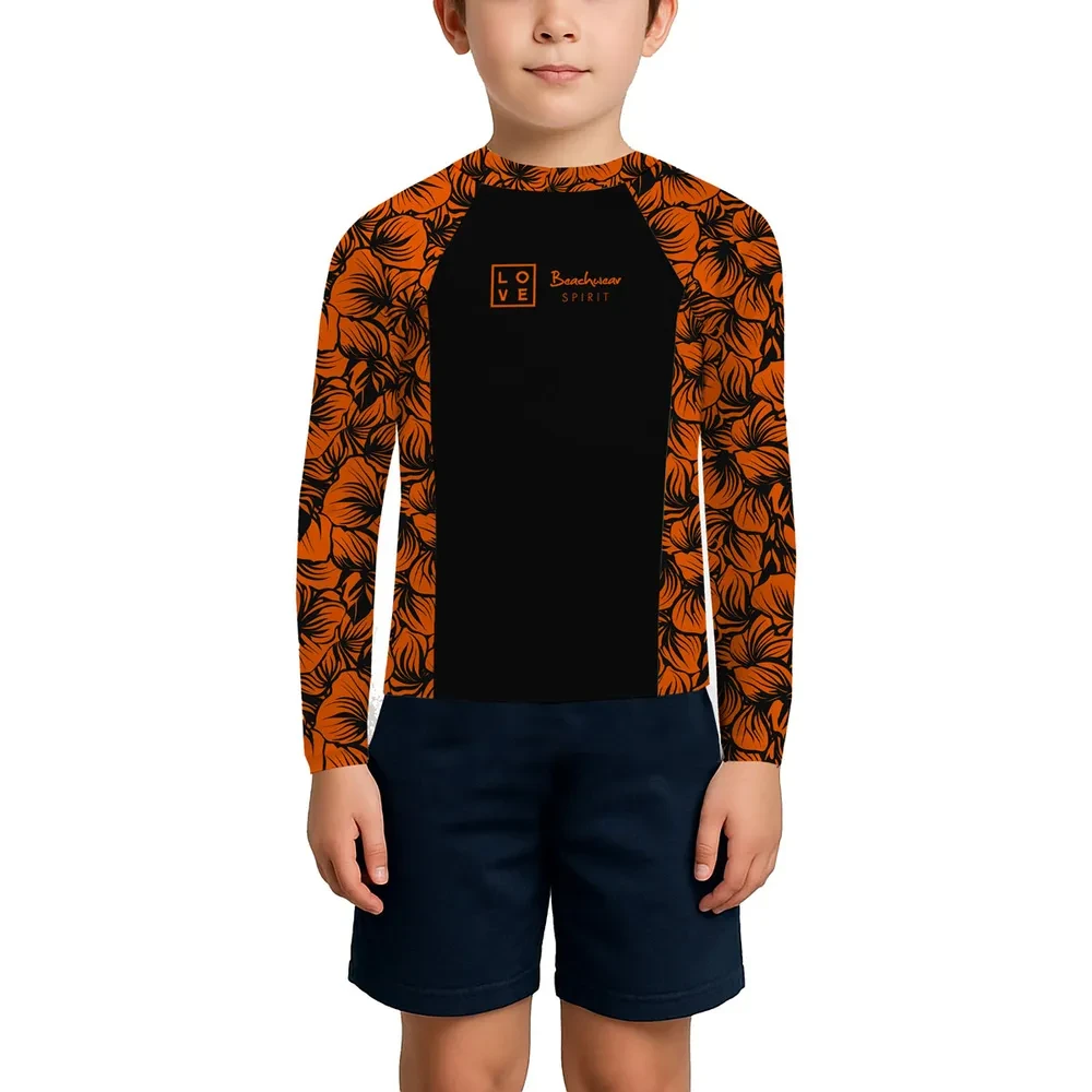 Kid's Rashguard – Hibiscus – Black/Orange