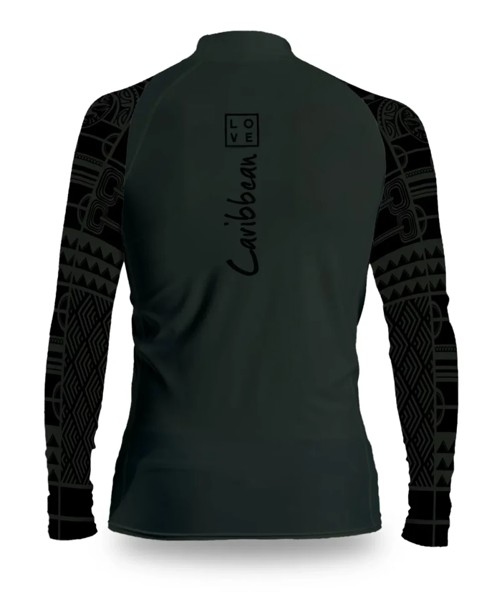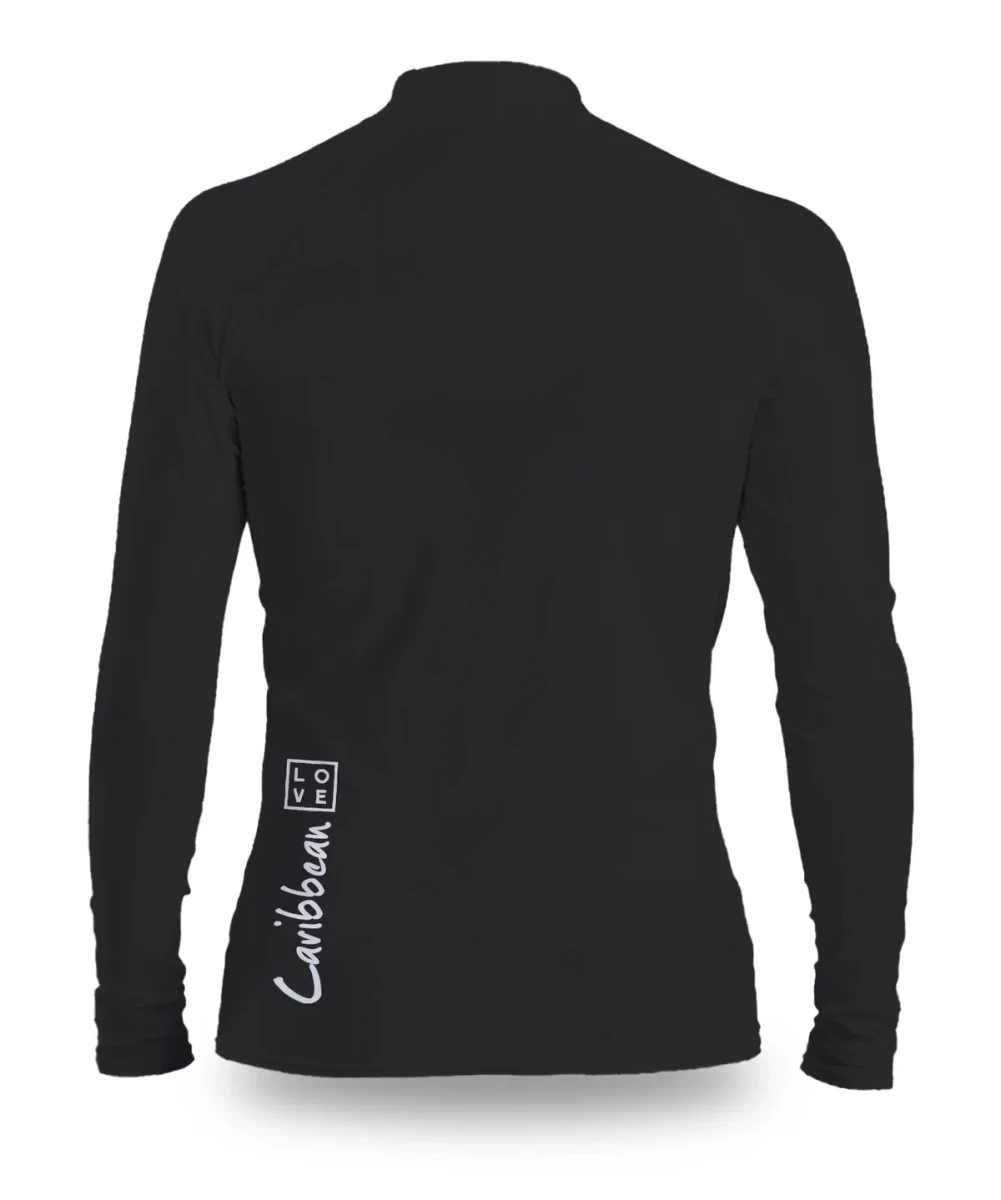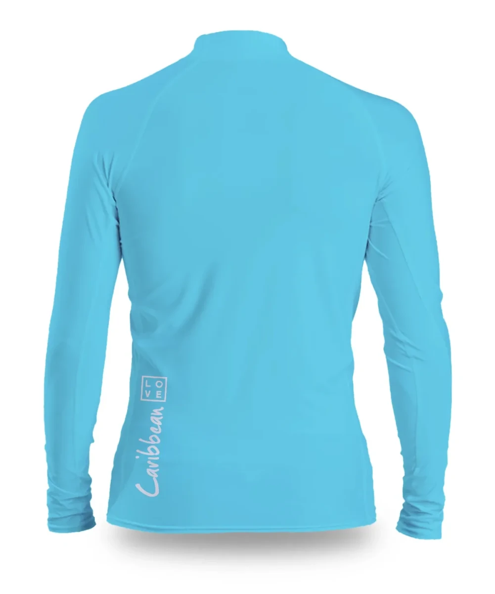 Discover the LOVE Caribbean unisex long-sleeve lycra, designed to support your active lifestyle and moments of relaxation by the sea.