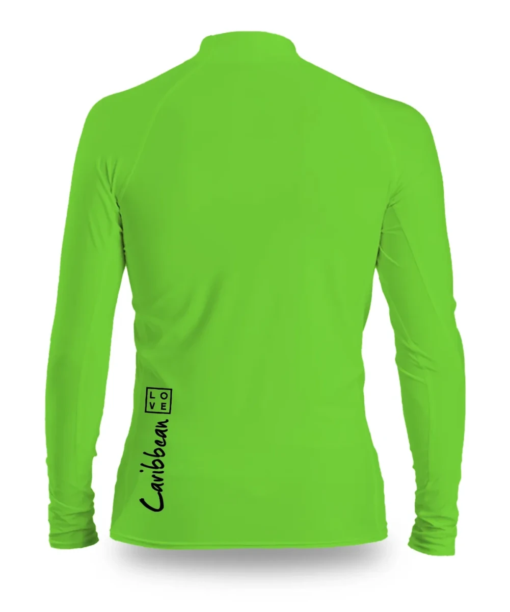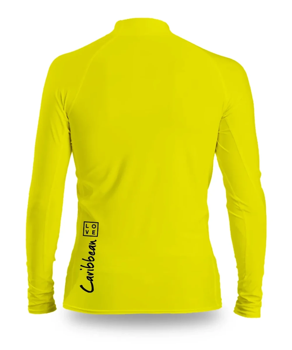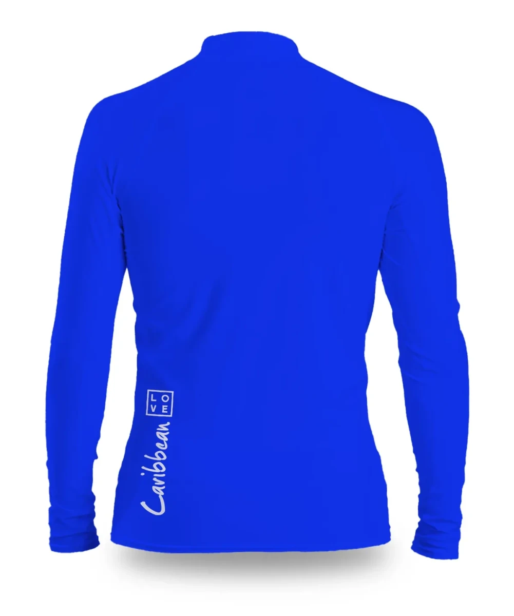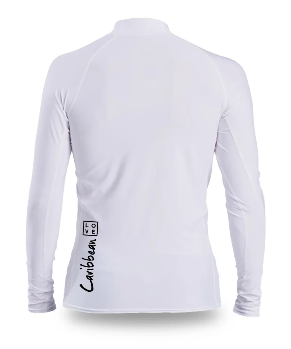 Discover the LOVE Caribbean unisex long-sleeve lycra, designed to support your active lifestyle and moments of relaxation by the sea.