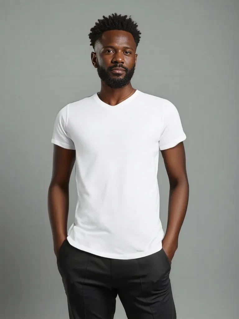 Men's T-shirt Cotton Plain V-Neck White - Love Concept Store