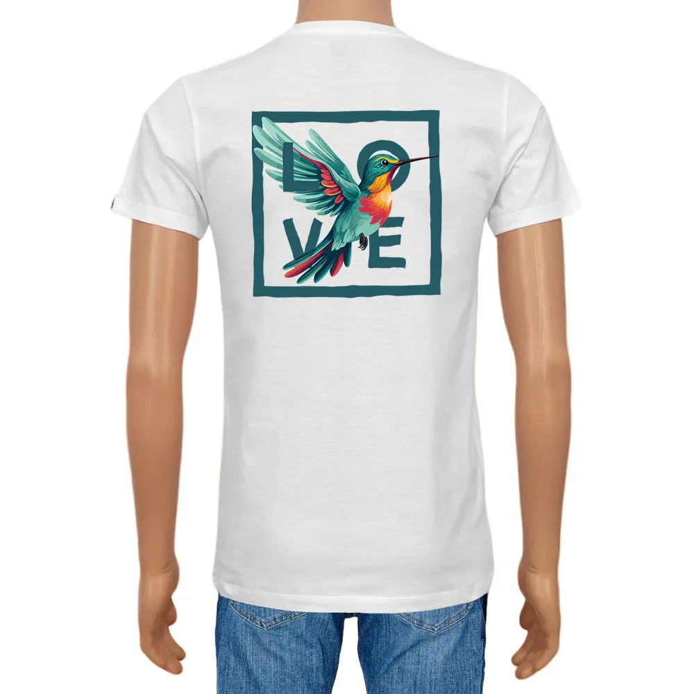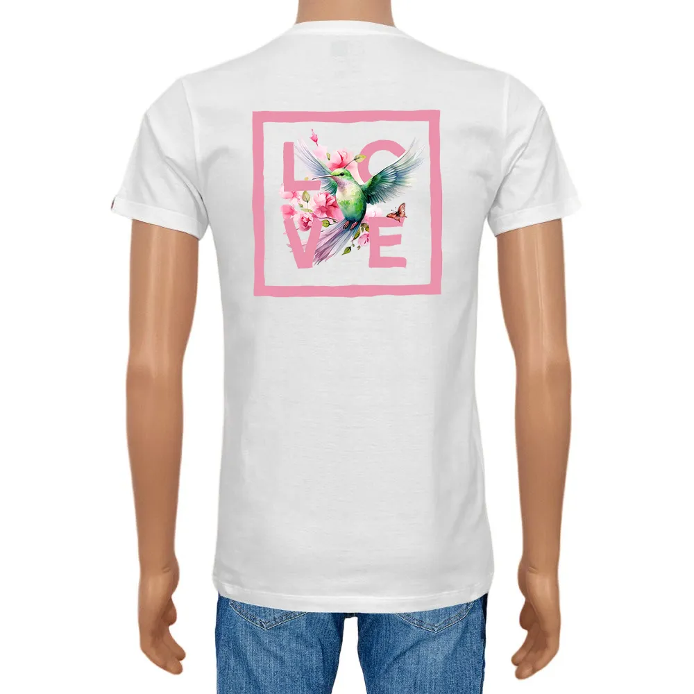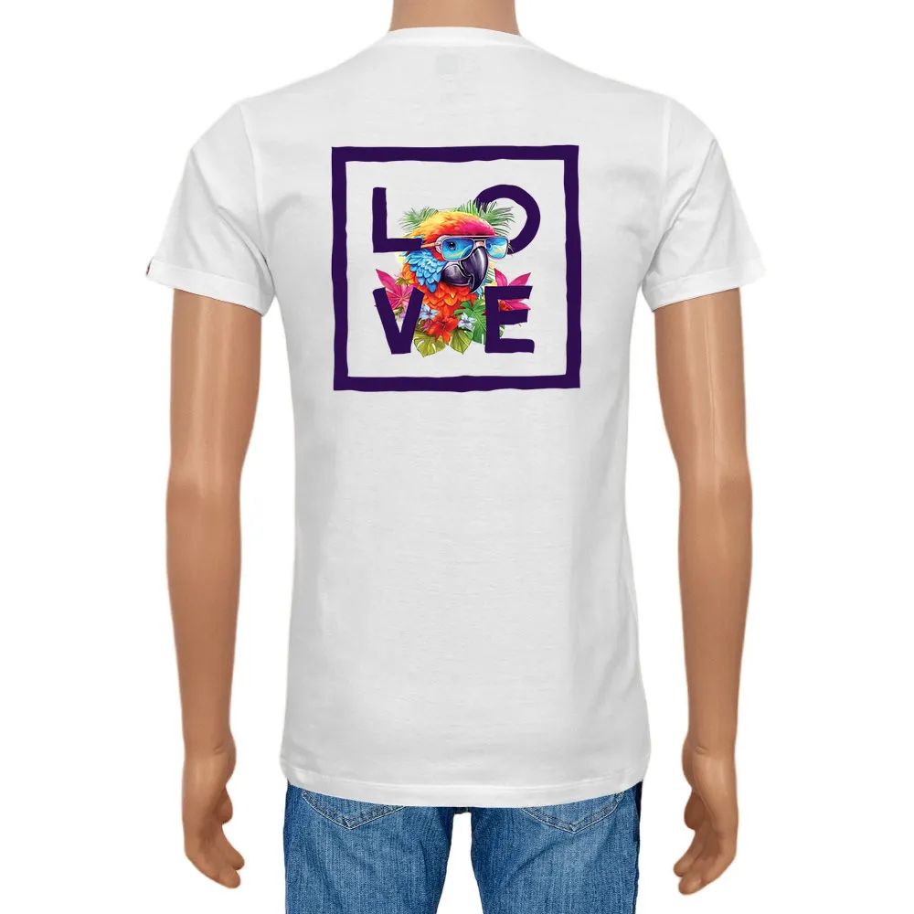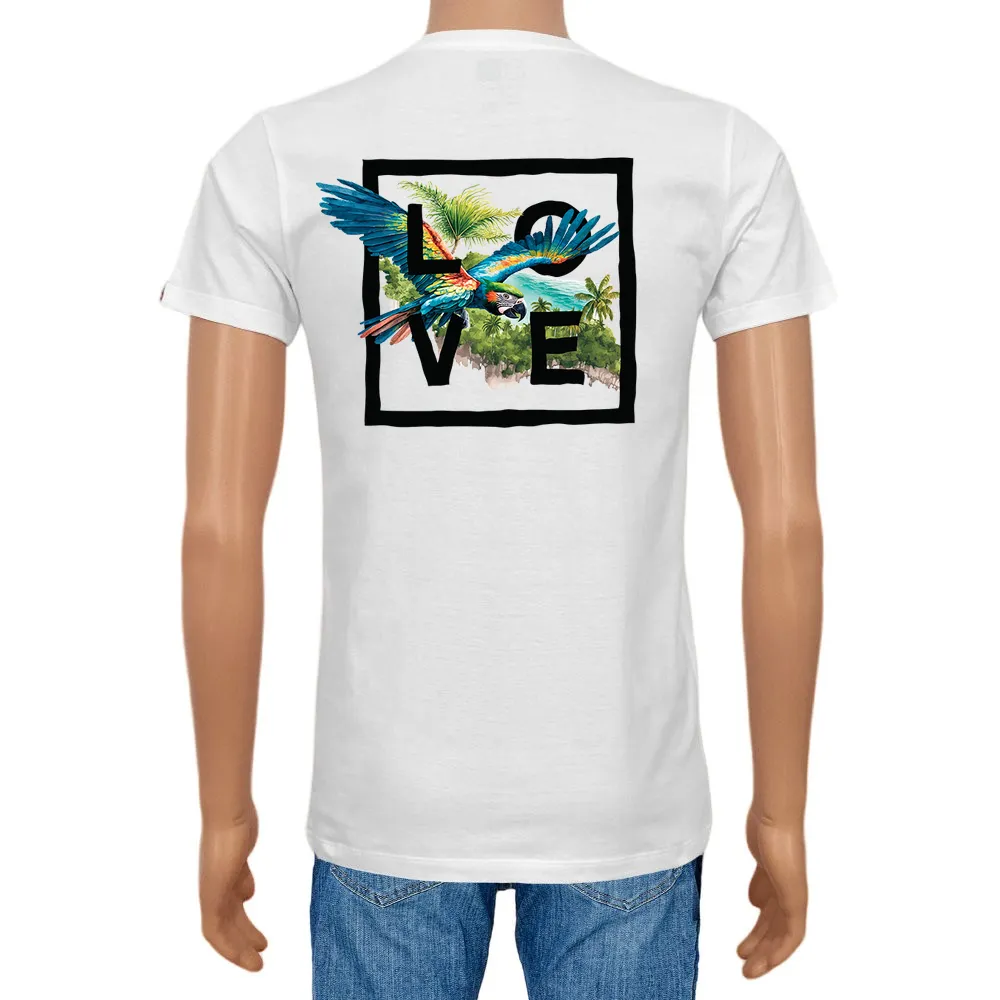 Men's T-shirt Cotton Plain V-Neck White Logo Birds - Love Concept Store
