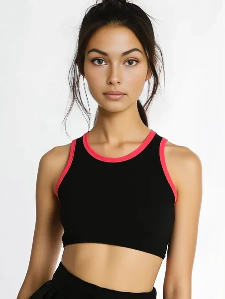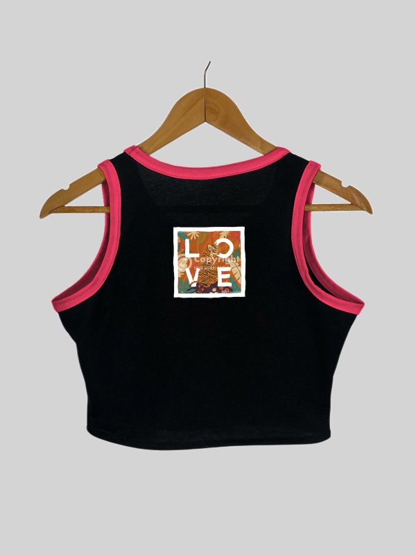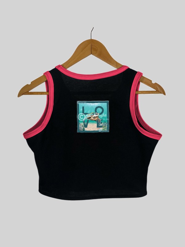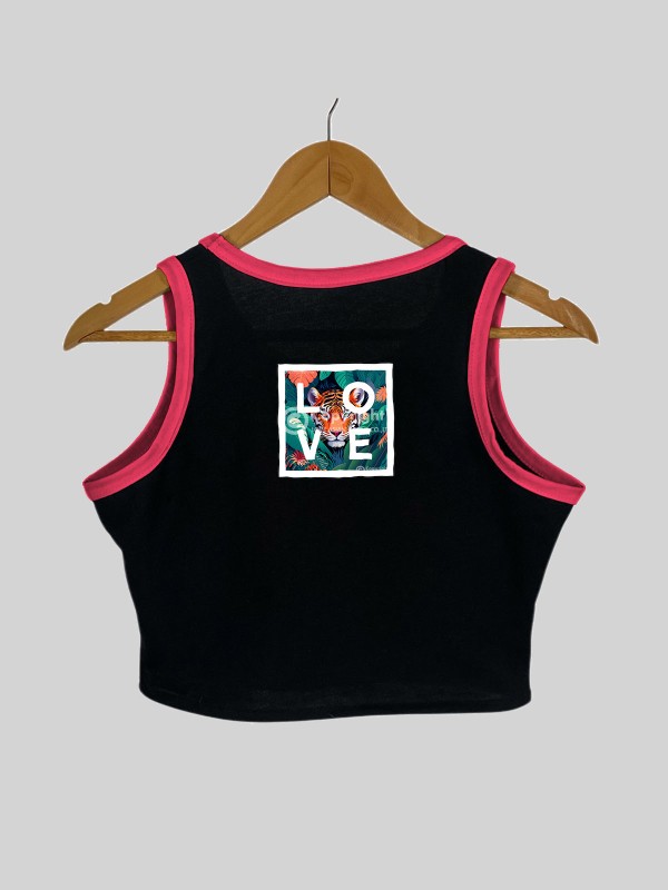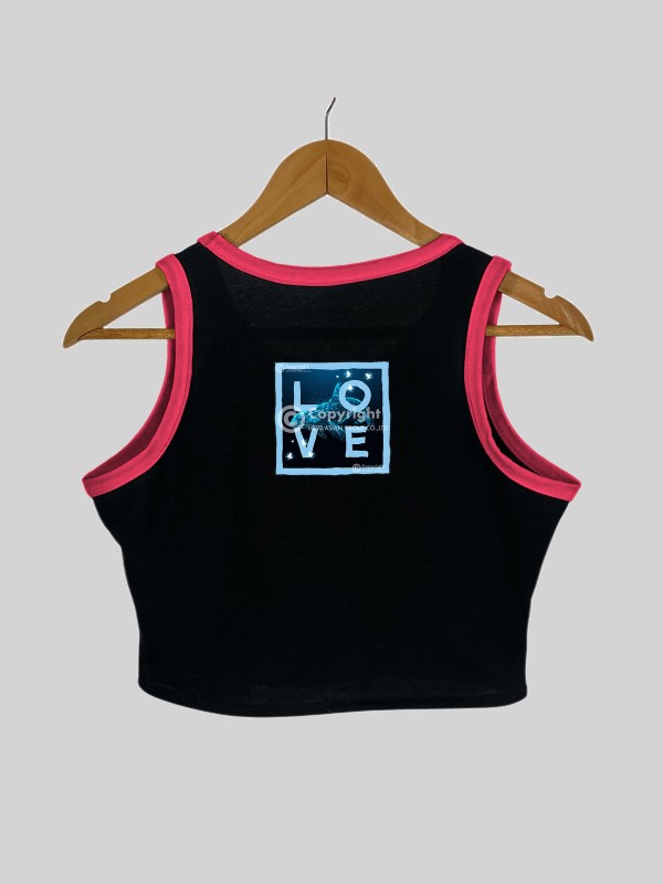 Singlet Crop top – Super Soft – Black/Fluo pink