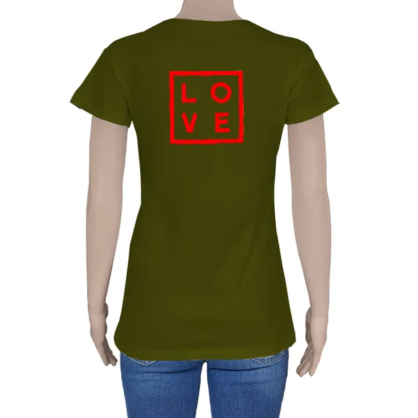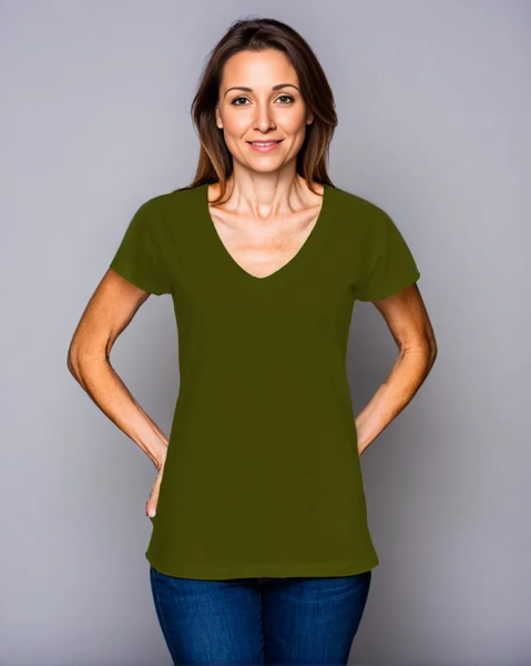 T-shirts - Women - Cotton - Open V – Army green - Classic (Print)