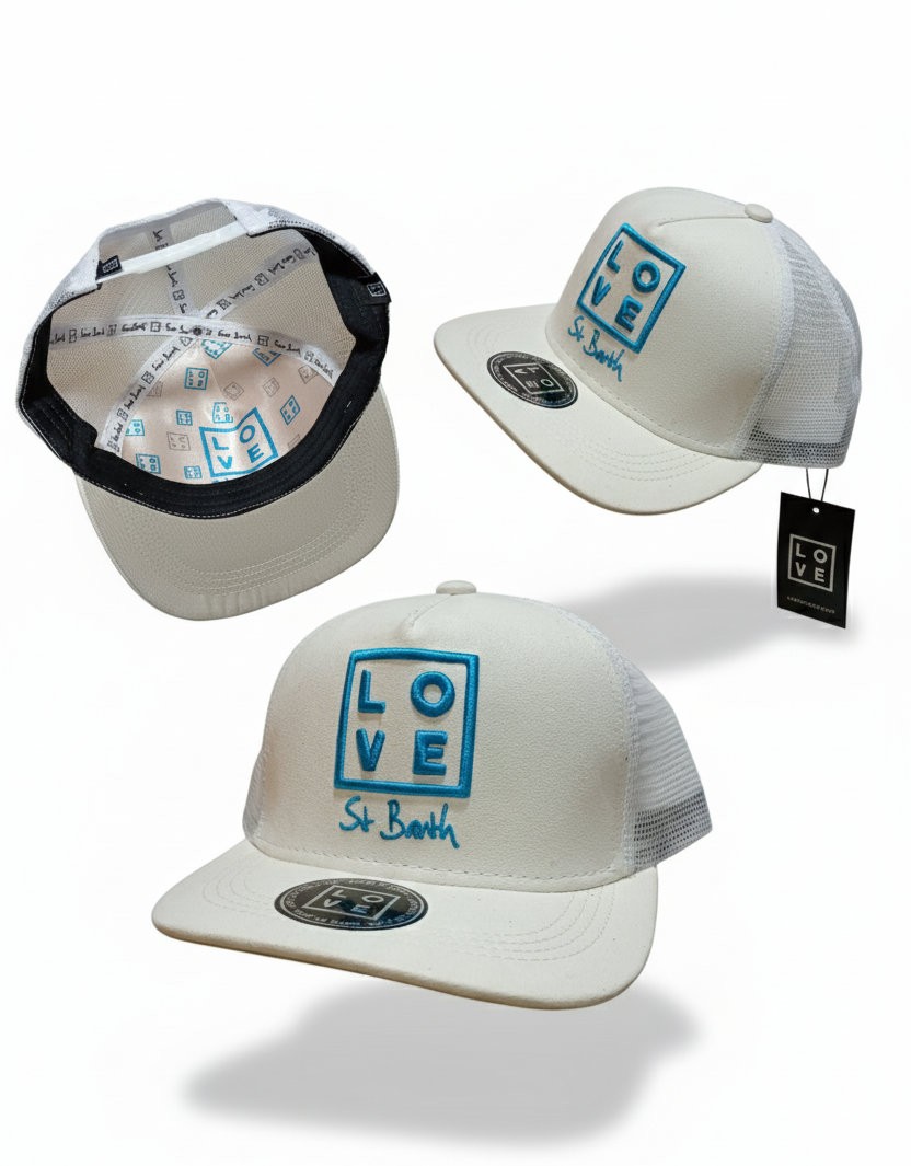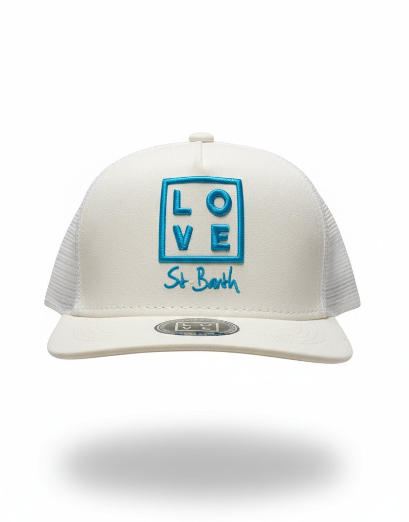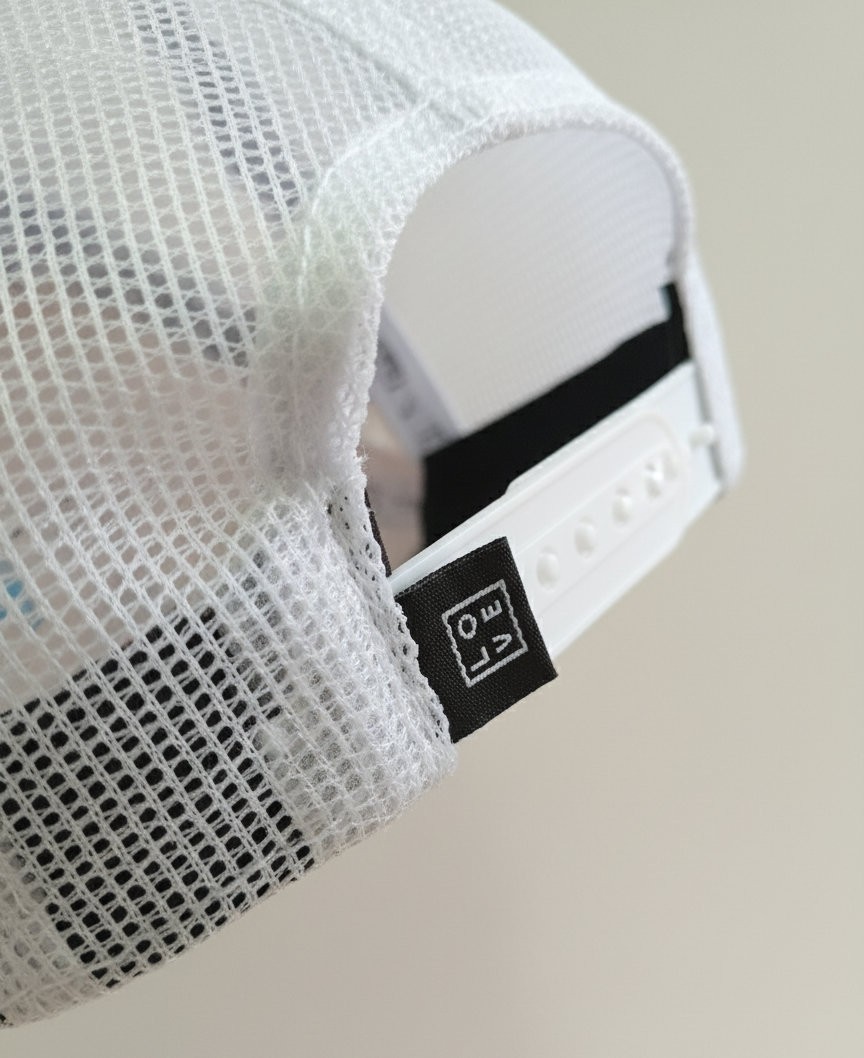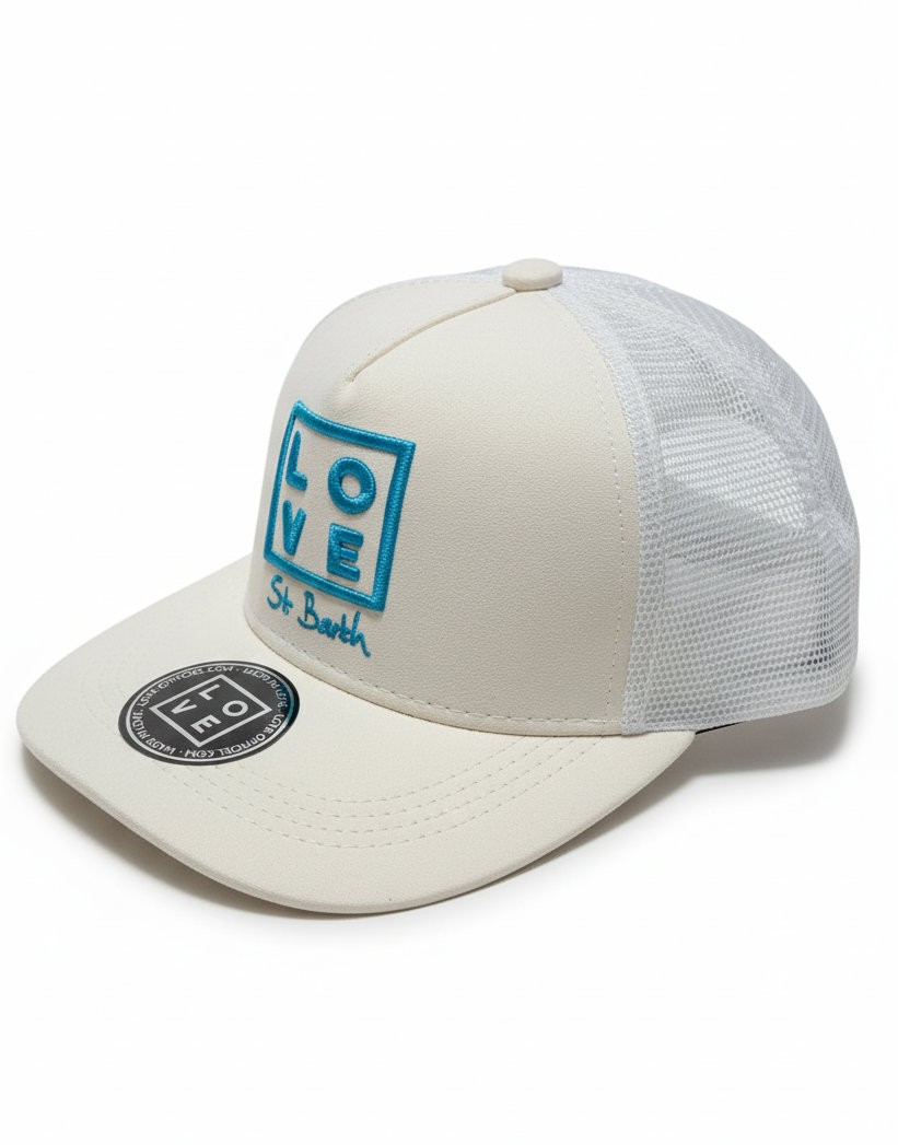 Trucker cap – Cream white/White – Embroidered turquoise blue logo