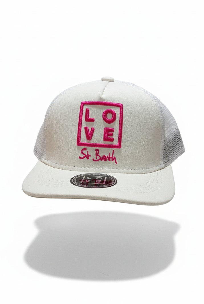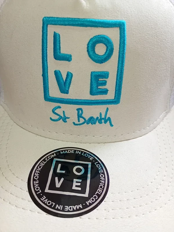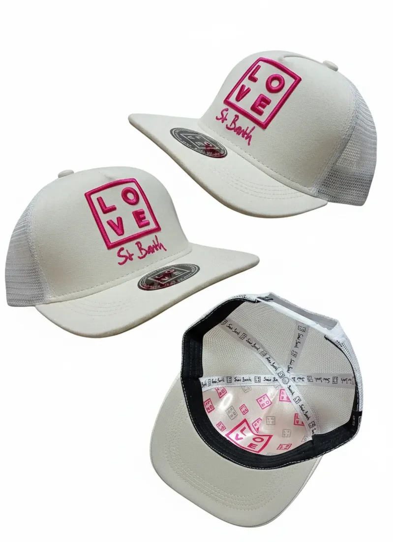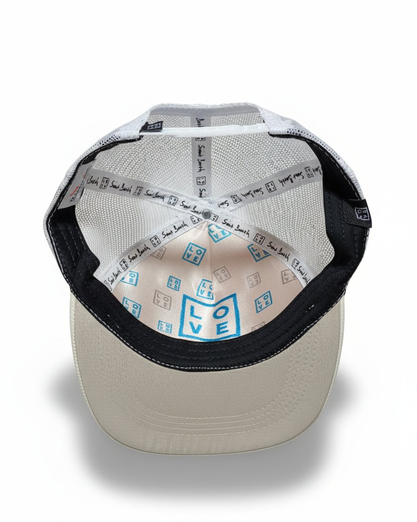Trucker cap – Cream white/White – Embroidered turquoise blue logo