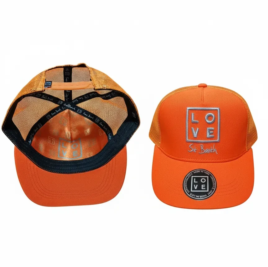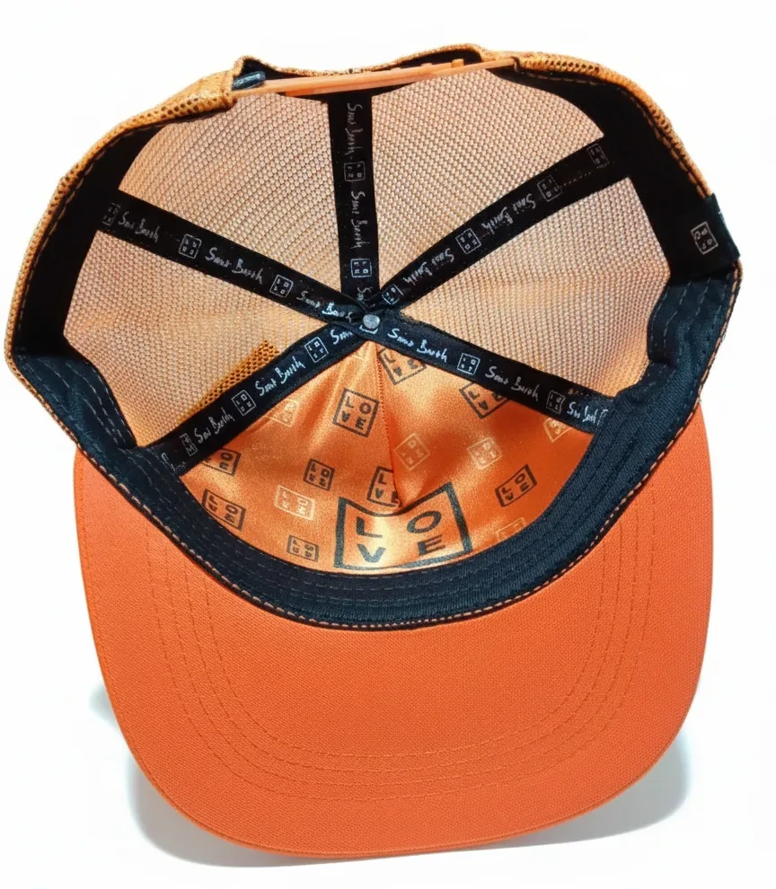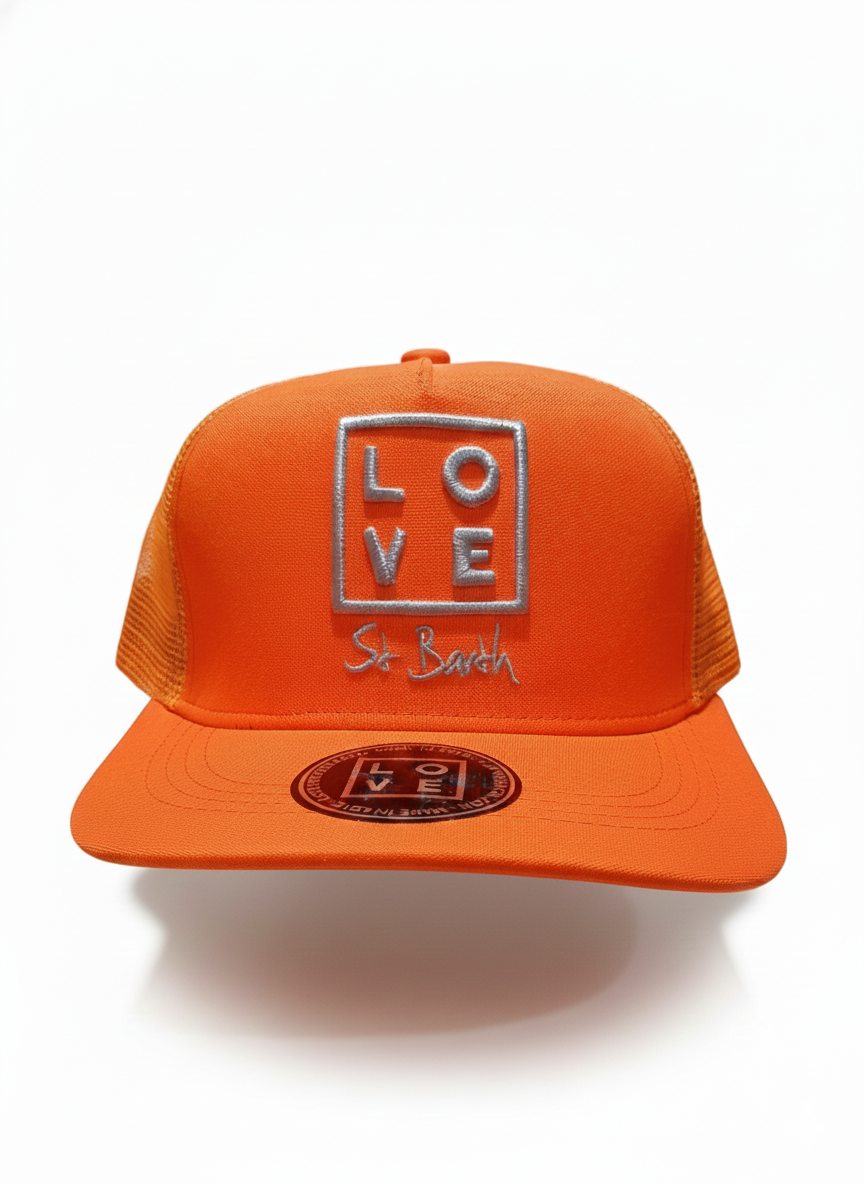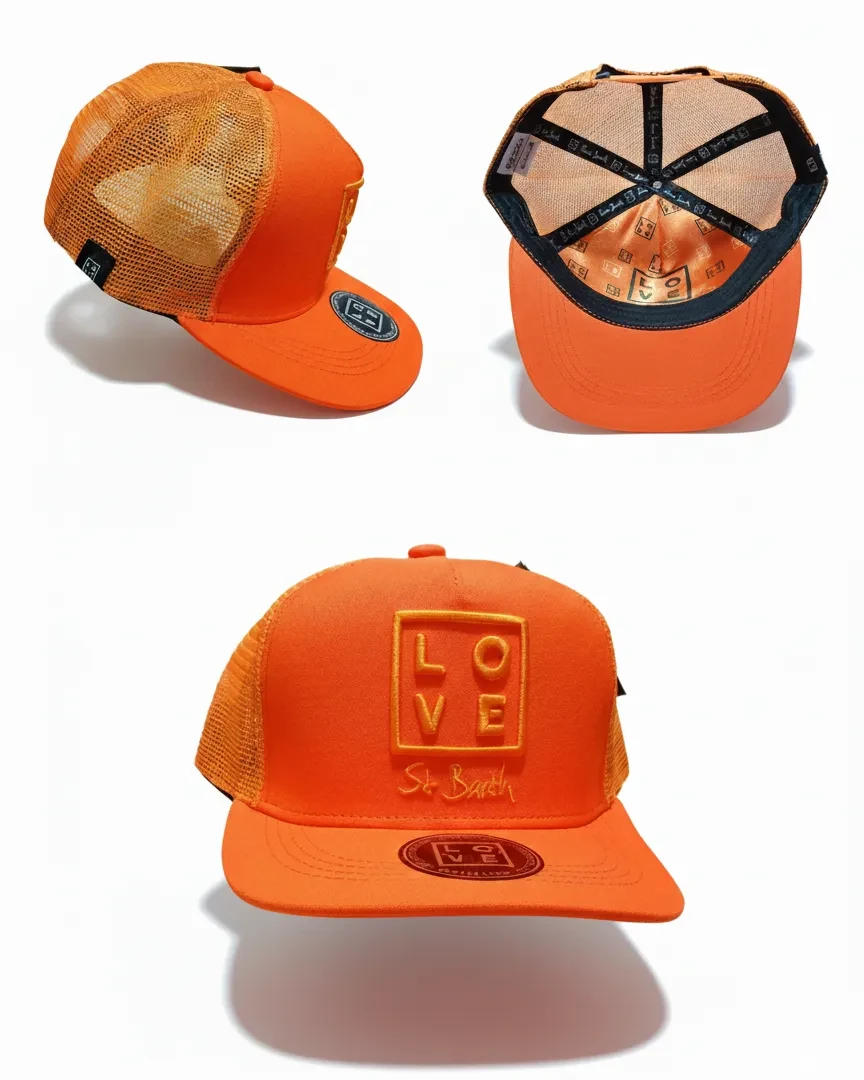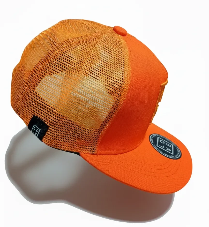 Combine style, comfort, and a vibrant identity with this Trucker cap, a striking piece from our collection. This unisex model features a structured front panel, curved visor, and breathable orange mesh on the back, making it perfect for sunny days and everyday wear.