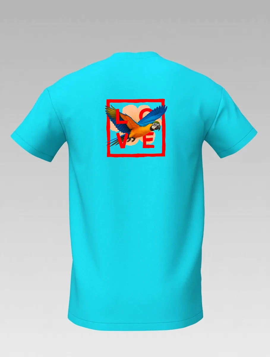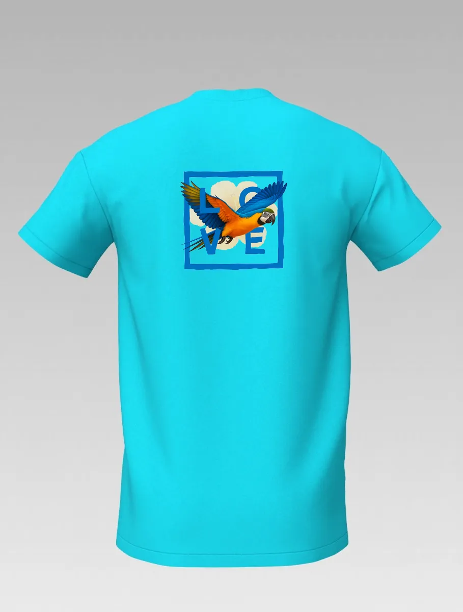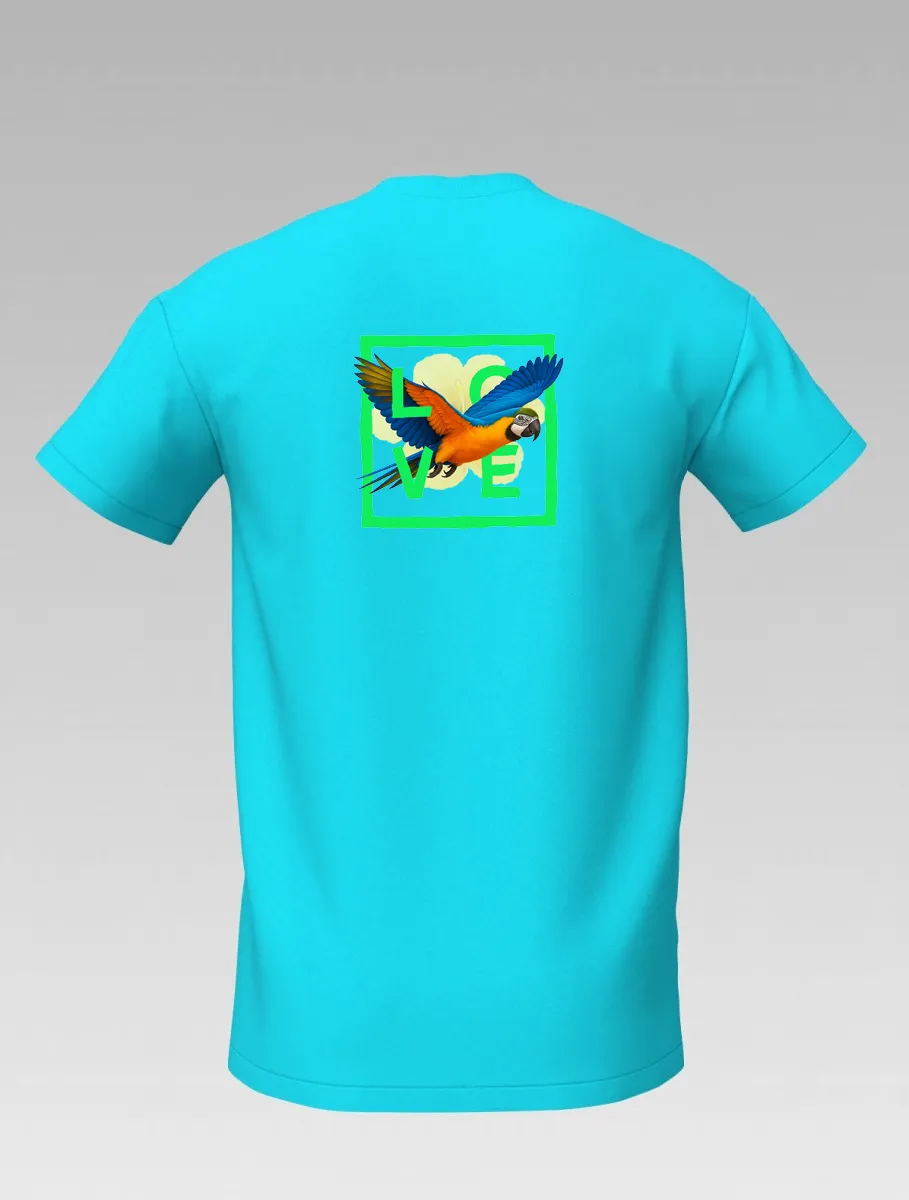 The colorful parrot spreads its wings across the fabric, symbolizing freedom, joy, and the vibrant spirit of the islands.