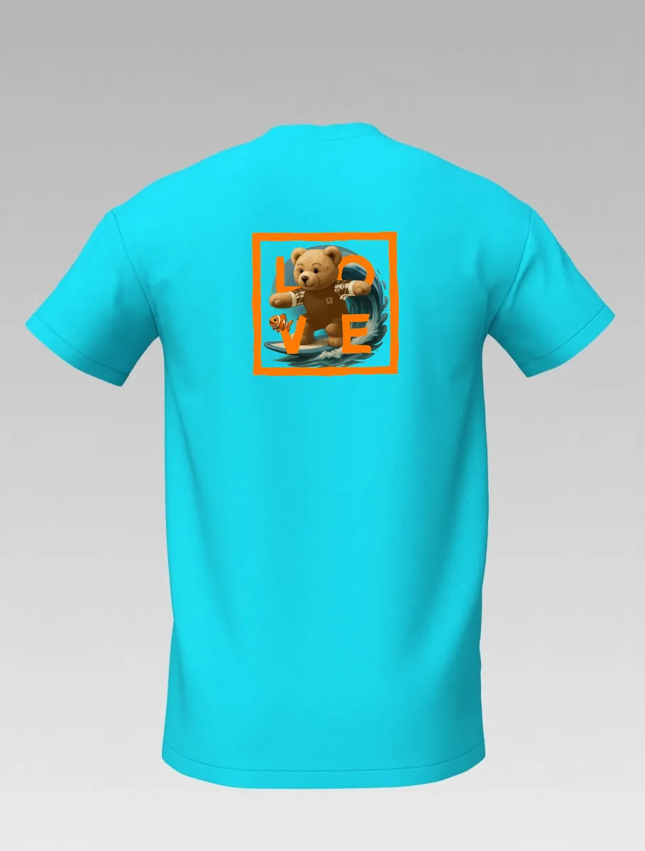 Turquoise Kids’ T-shirt – Surfing Bear – Signature St Barth & St Martin – LOVE Edition