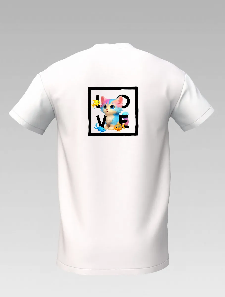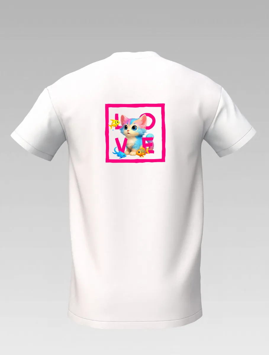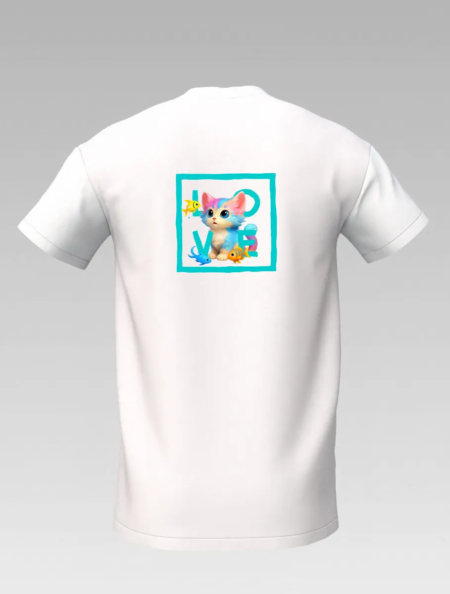 White Kids’ T-shirt – Playful Cat and Fish – St Barth & St Martin Signature – LOVE Edition