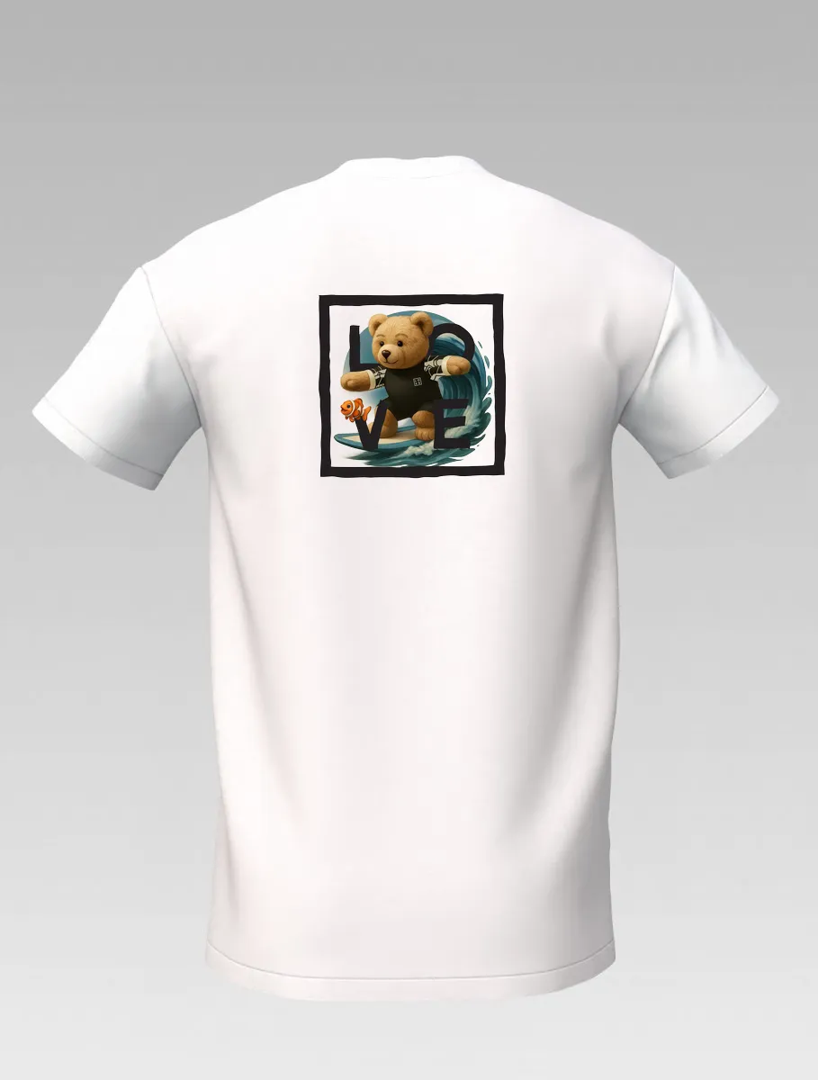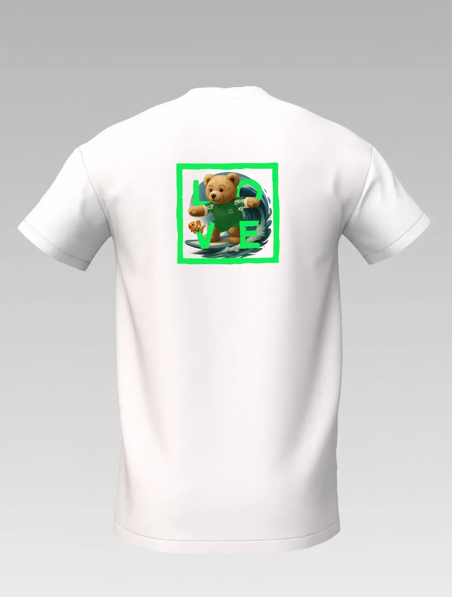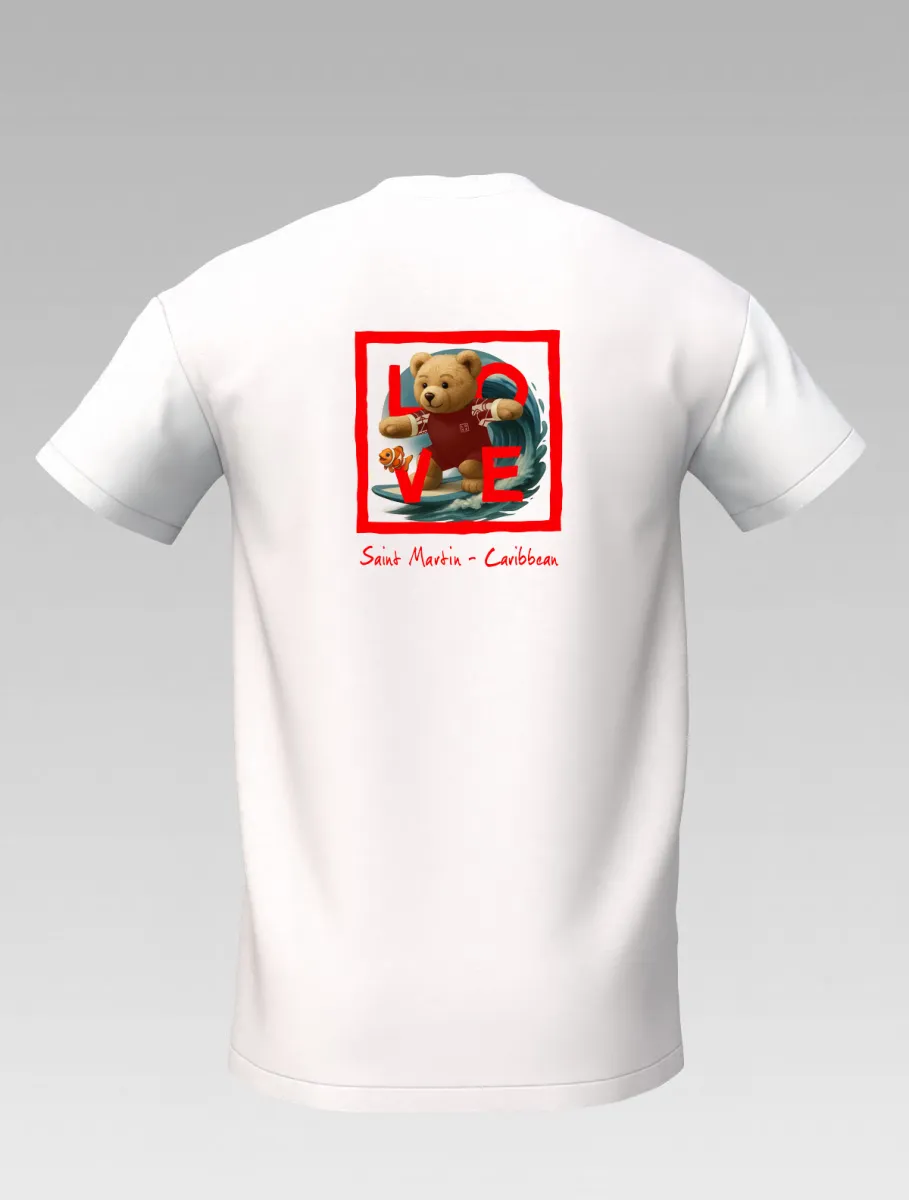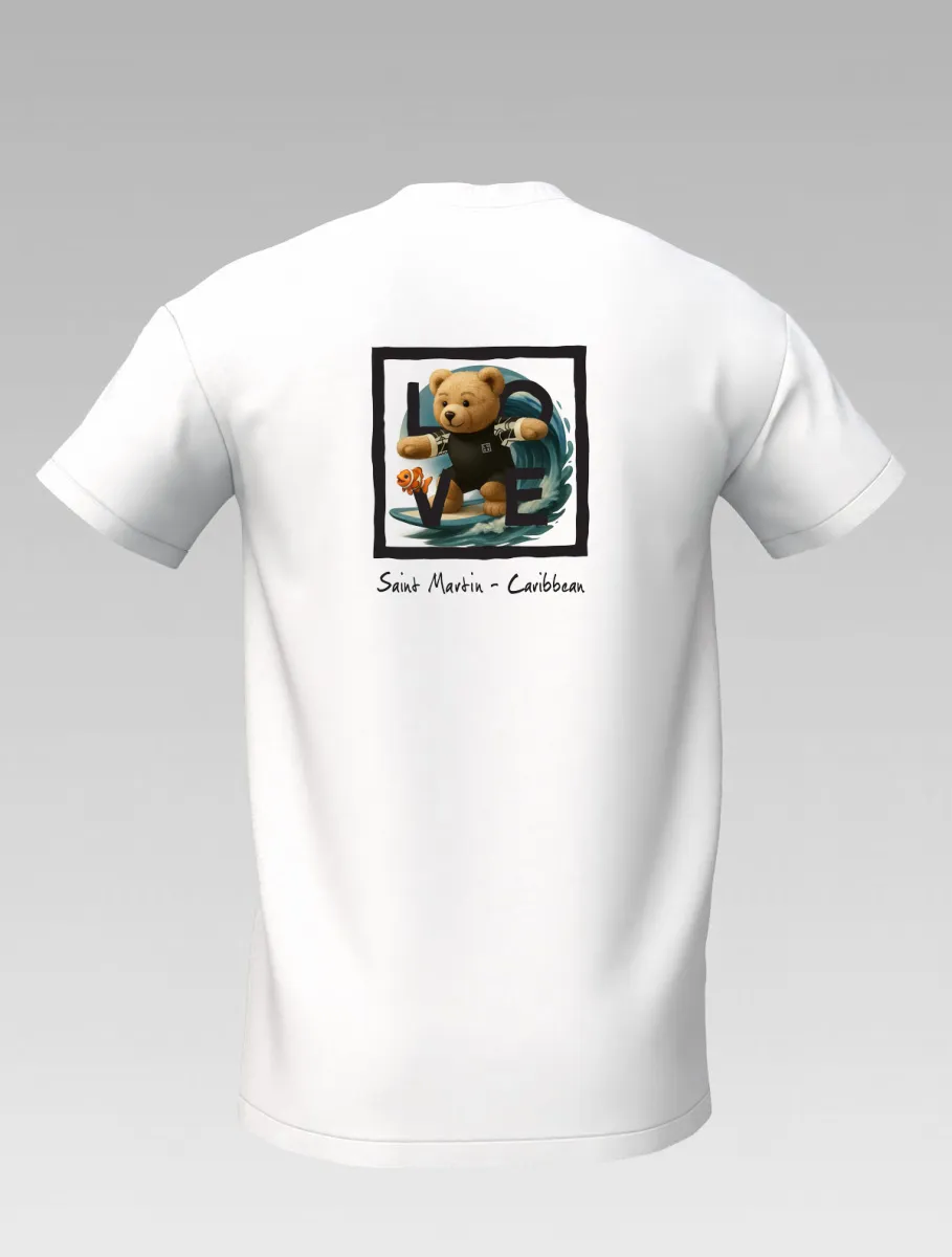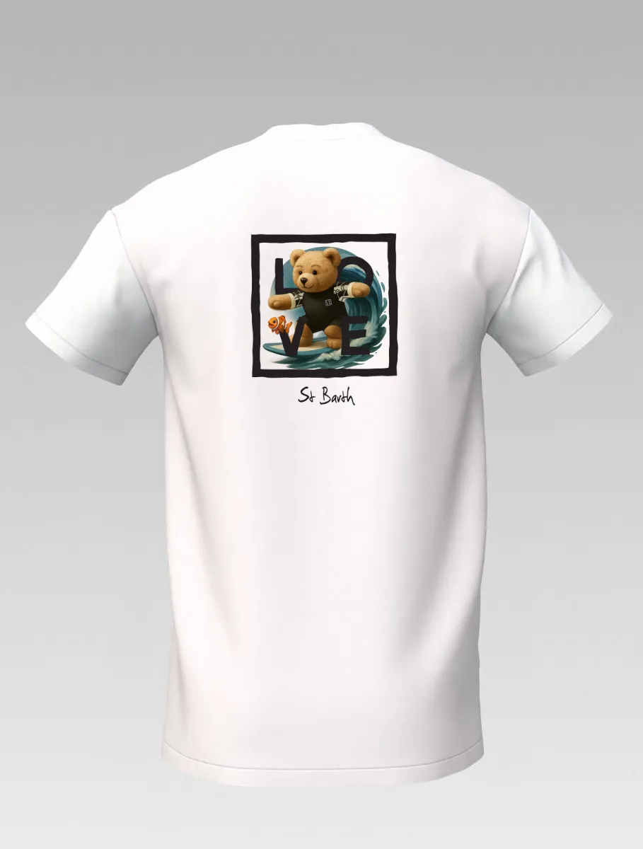 White Kids’ T-shirt – Surfing Bear – Signature St Barth & St Martin – LOVE Edition
