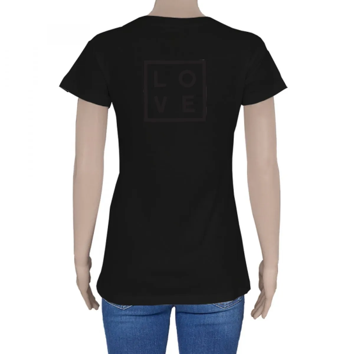 Women's T-shirt – Cotton – Open V – Black - Logo Classic Print