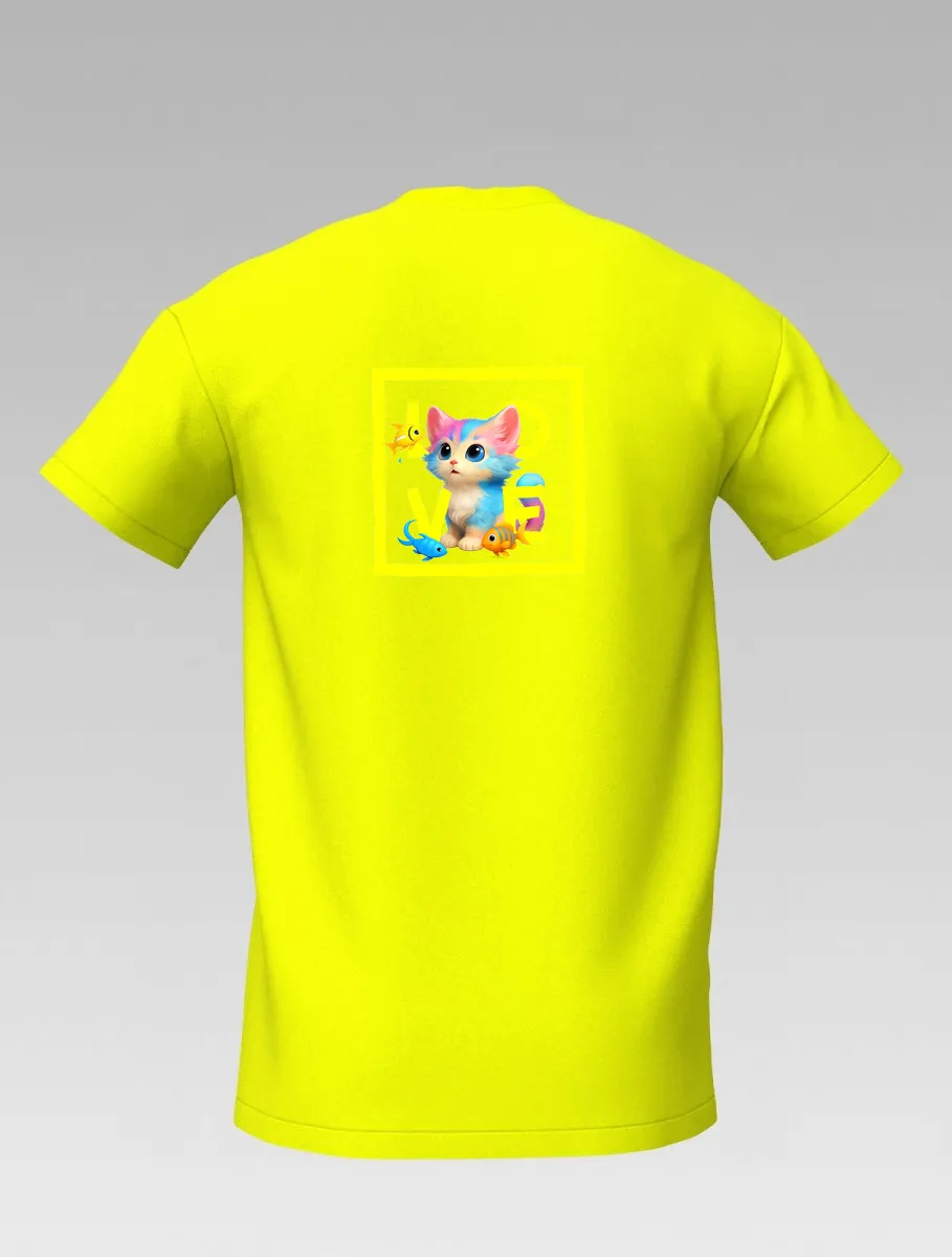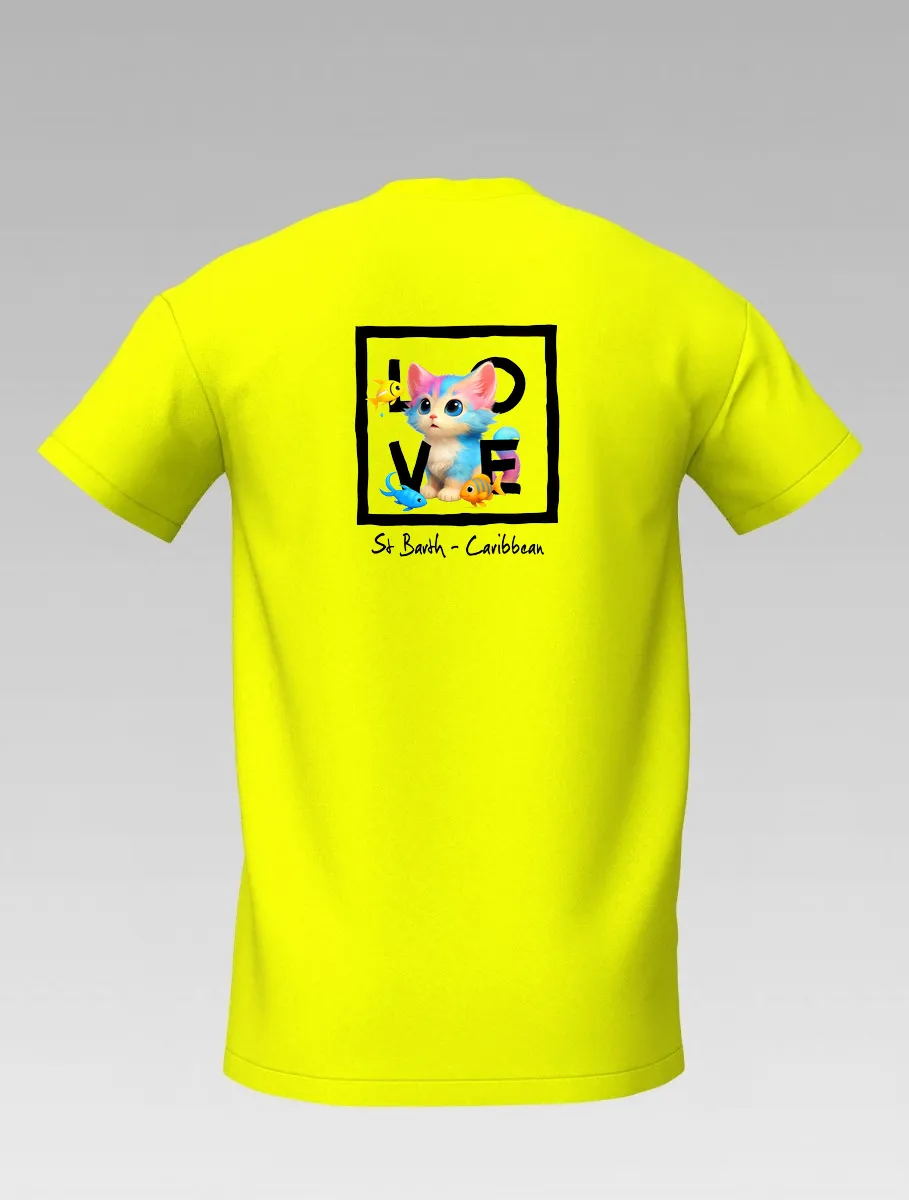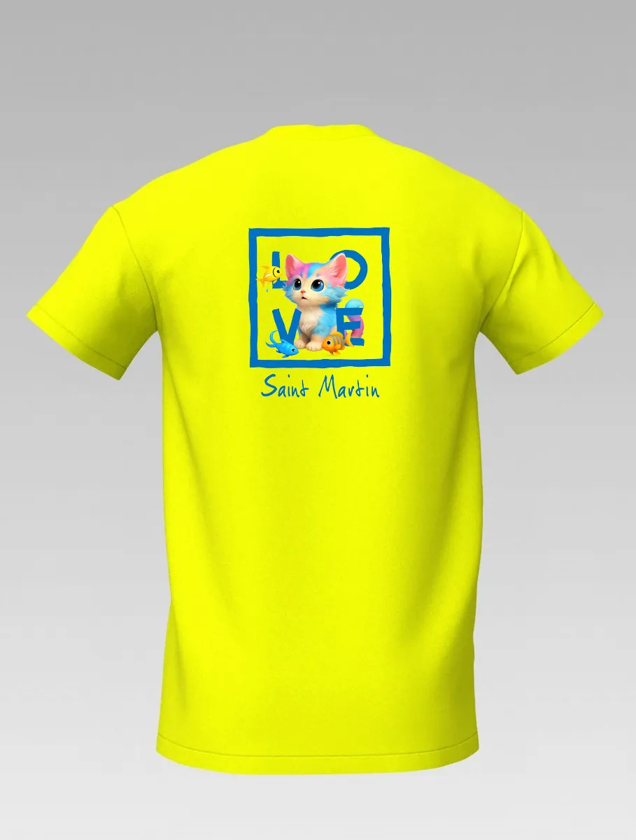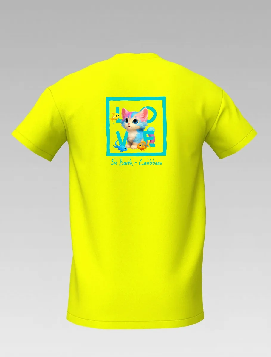 Yellow Kids’ T-shirt – Playful Cat and Fish – St Barth & St Martin Signature – LOVE Edition