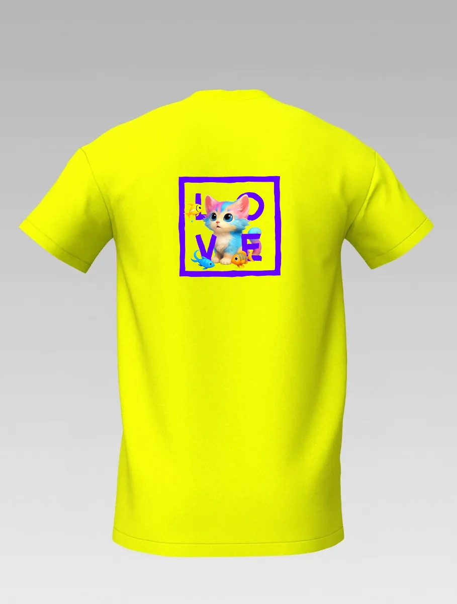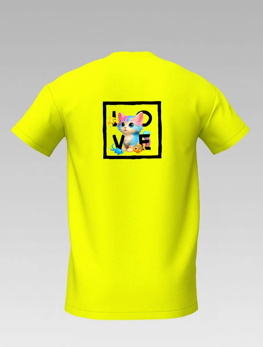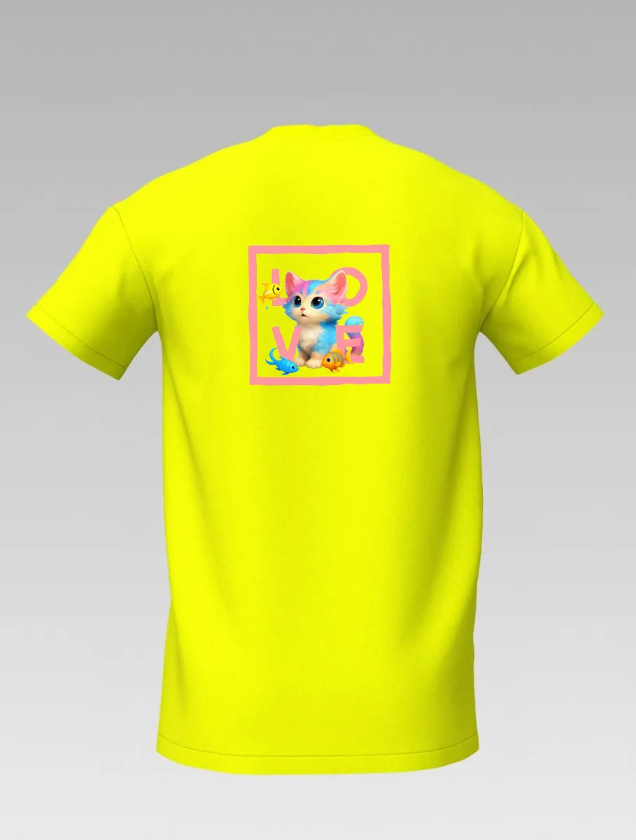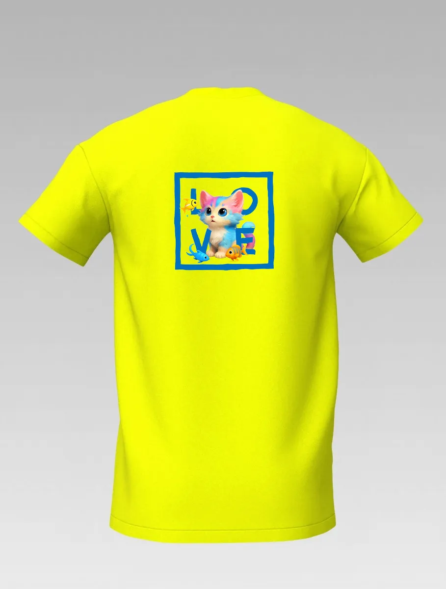 Yellow Kids’ T-shirt – Playful Cat and Fish – St Barth & St Martin Signature – LOVE Edition